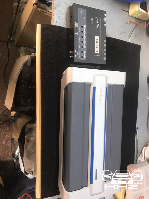 Йдемо далі і наступний момент - це встановлення нашого підсилювача звуку і звукового процесора. Той, хто не стикався з автозвуком, запитає навіщо звуковий процесор в BMW 3 E92, думаю, ні для кого не секрет, що звук, який виходить із заводської магнітоли практично будь-якого авто, має огидну якість, і якщо його далі без обробки підсилювати, то в підсумку вийде жахливий сигнал, який посилили. Дана тенденція часто зустрічається в автомобілях даної марки, так як в них поміняти магнітолу не завжди просто, а в деяких моментах навіть дуже дорого, вигідніше встановити звуковий процесор, який зніме сигнал з рідної магнітоли / обробить його / прибере всі фільтра / діеквалізірует сигнал / і видасть вже на підсилювач чистий і рівний сигнал, який при посиленні вже підсилювачем звуку, подарує вам найвищу якість звуку на виході. Процесор звуку ми запропонували бренду Audison BIT TEN - це 5-ти канальний процесор для побудови хороших акустичних систем. І підсилювач звуку був обраний 5-ти канальний Infinity REF 5350A, це перевірена модель роками з хорошою схемою-технікою, і високими показниками вихідного сигналу. Для встановлення підсилювача звуку і звукового процесора в BMW 3 E92, ми виготовили подіум, перетягнули його карпетом під колір багажника і закріпили під полицею, так щоб всі дроти і техніка не заважала перевезенню речей в багажнику, під полицею обладнанню дуже комфортно, і місця в багажнику залишилося багато!