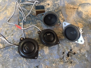 Усі проставочні кільця ми пофарбували в чорний колір, і тепер ми можемо встановлювати на фронт 2-компонентну акустику, мідбаси в дверцята, кросовери заховані під торпедою, а пищалки в штатні місця в торпедо, для них ми підібрали схожі кріплення: