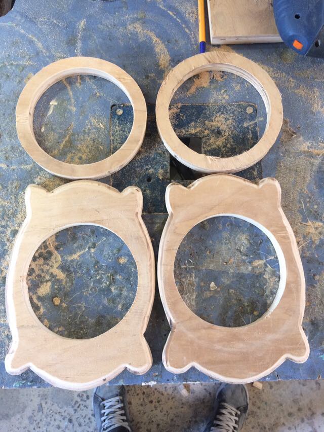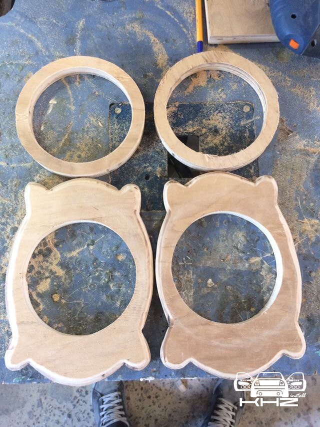 За магнітною системою динаміків можна зрозуміти запас потужності і якість збірки динаміків, а також факт, що кошик так само зроблено з пластику, а так не повинно бути, для двох комплектів акустики ми вирізали 2 комплекти проставок під акустику, на фронт перехідні з овалів на круглу, а на тил круглі, щоб висунути акустику, і щоб вона щільно стояла на дерев'яних кільцях, а не на металі.