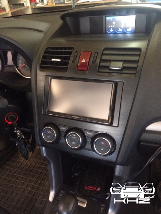 Дійшла черга заміни магнітоли, для хорошого звуку штатна магнітола має бути замінена, в нашому випадку ми боролися за якість звуку, і для такого завдання підійде тільки фірмова магнітола, а не китаєць! Вибір припав на фірмову магнітолу Kenwood, в якій поєднується хороший звук з повним комплектом налаштувань і хороших функцій, в хорошому ціновому діапазоні. Для встановлення даної магнітоли в Subaru Forester нам знадобилися: - iso-адаптер, антенний перехідник і перехідна рамка, все це можна знайти в нашому інтернет-магазині автозвуку "Кілогерц". Кінцевий вигляд встановленої магнітоли такий:
