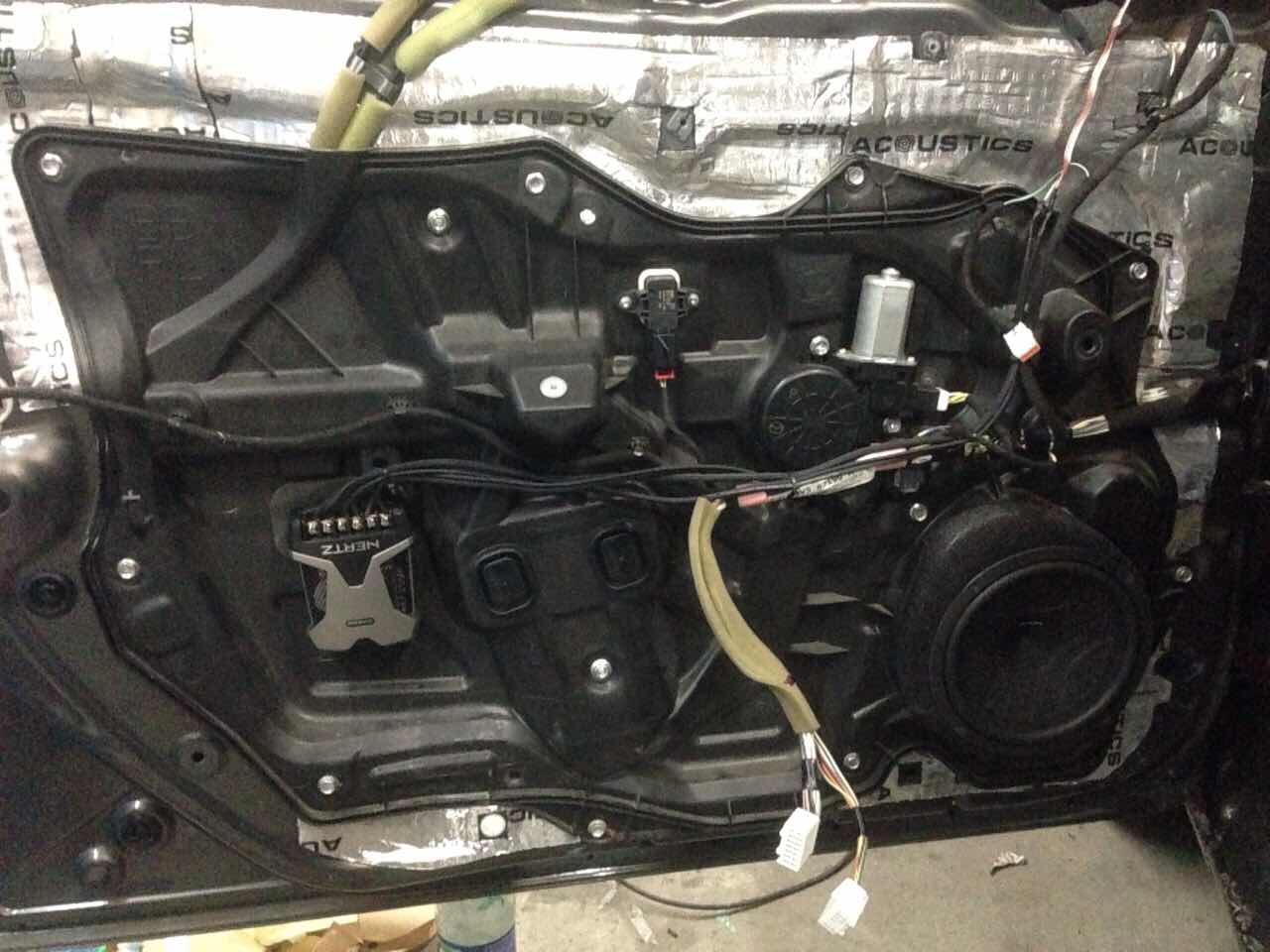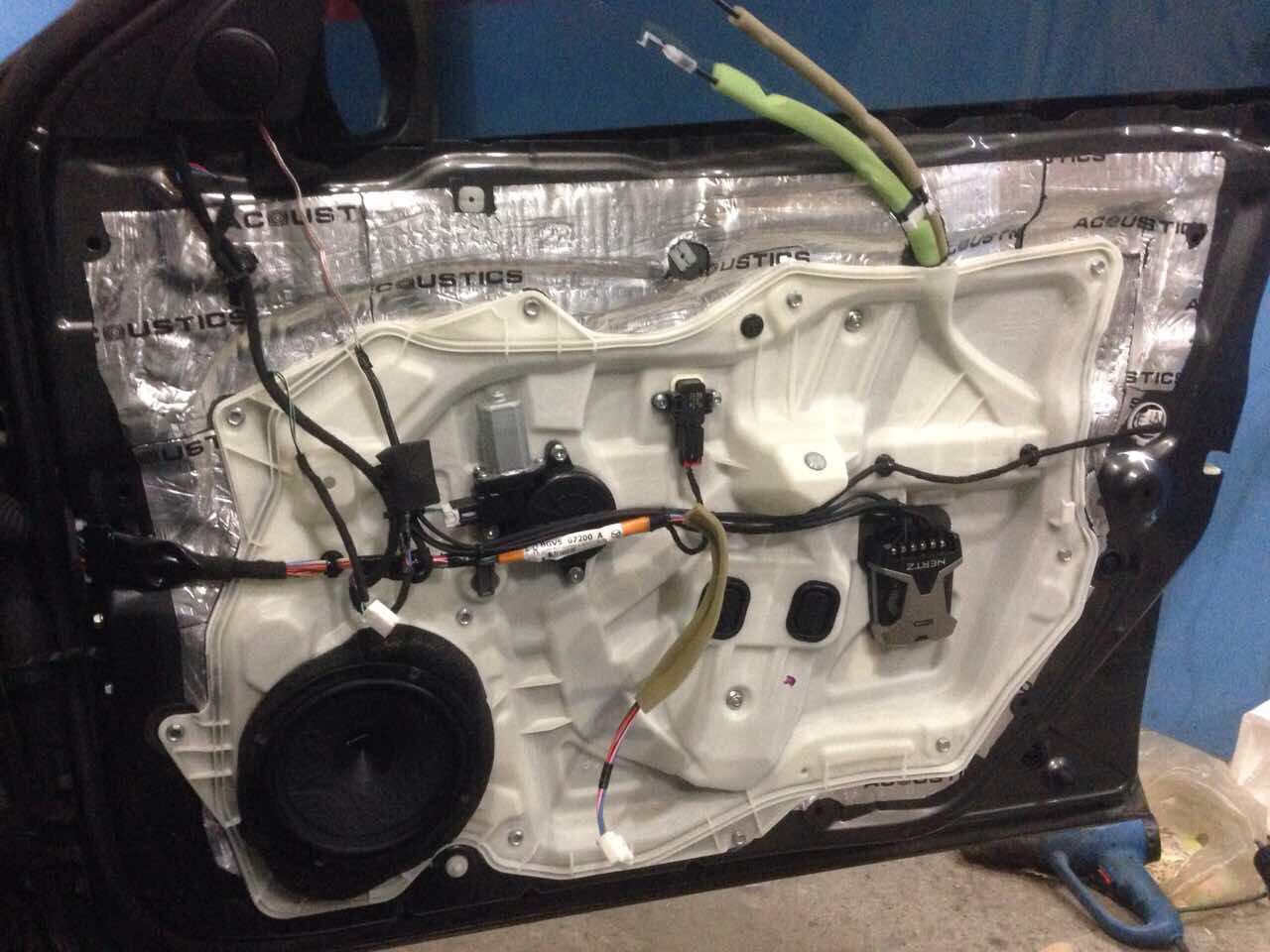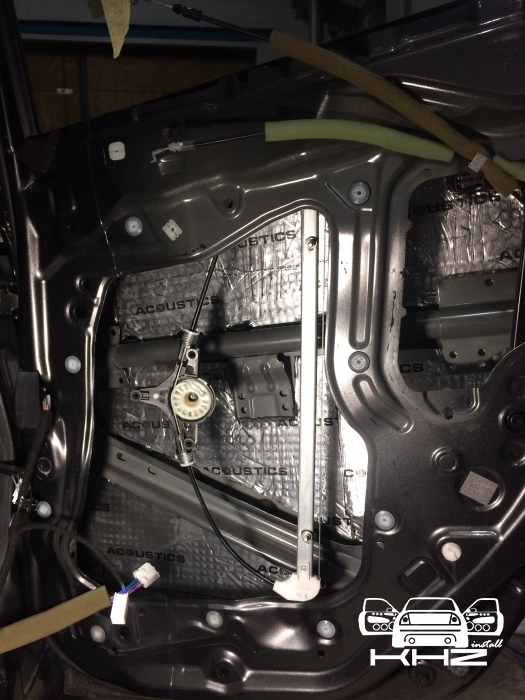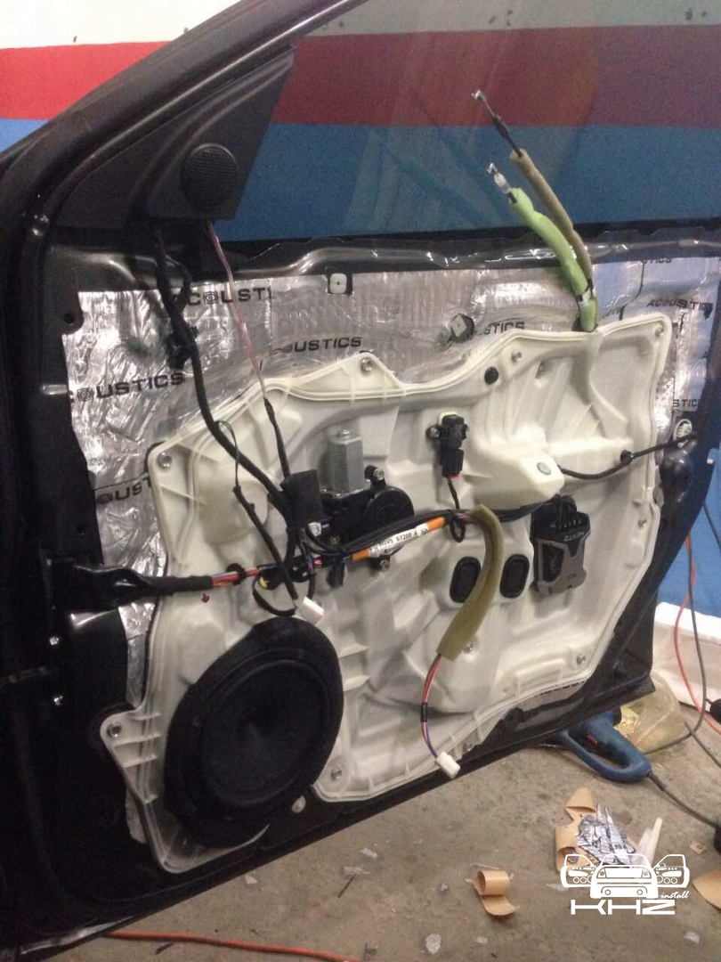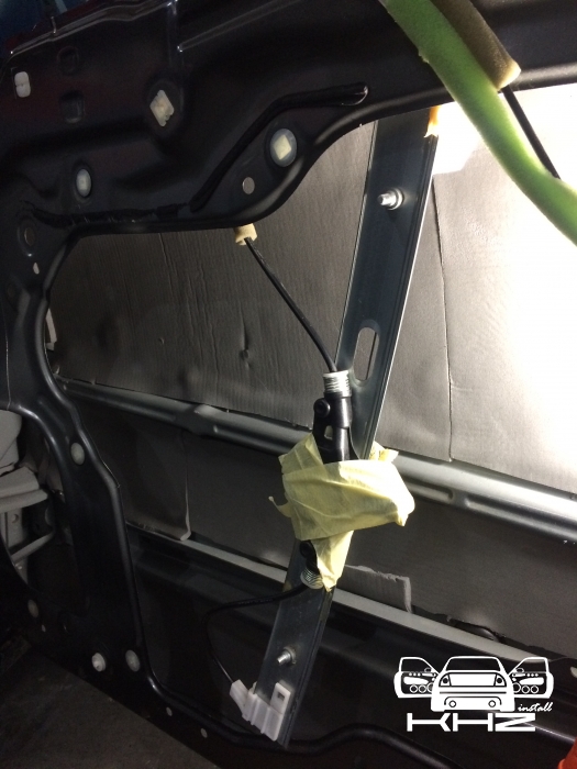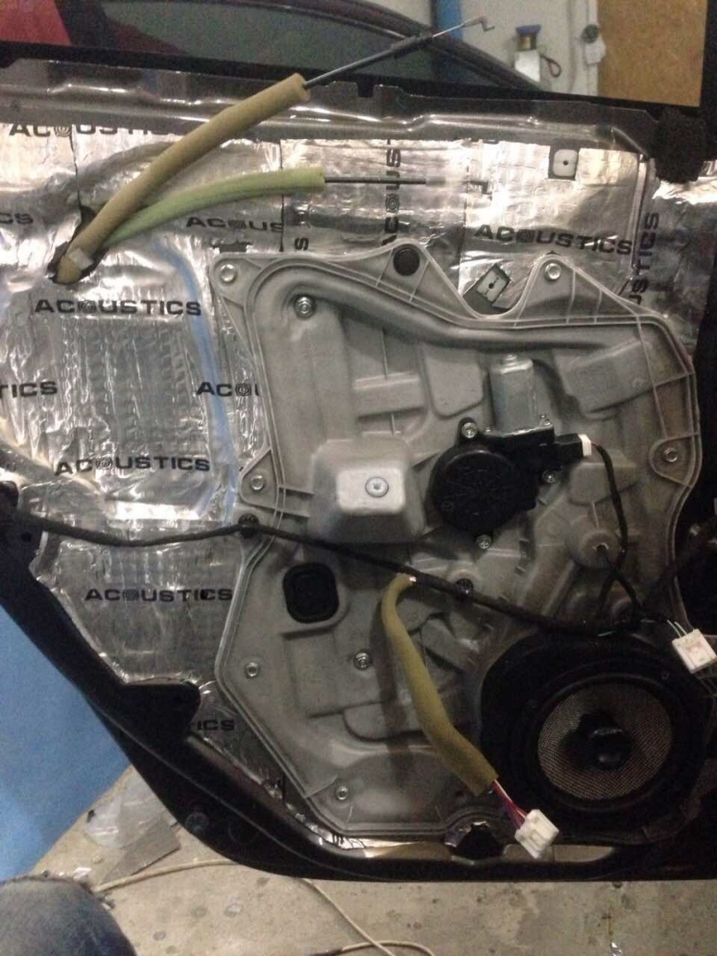 Ми робили тест за вагою, вирішили зважити акустику штатну і ту, що будемо ставити, і так цифри: штатний динамік важить 300 грамів, і це разом із подіумом, Герц важить 1100 грамів, Фокал - 1 кг, я думаю, різниця буде відчутною. І так тепер перейдемо до шумо-віброізоляції, це один з основних чинників у побудові правильної системи. Нам потрібно було знешумити 4 двері і ляду багажника. Чому вона потрібна? По-перше, за умови правильної шумоізоляції дверей вони перетворюються на закритий простір, так званий короб під акустику, і вона починає грати гарно та басово. І по-друге, прибирає зайві звуки поза автомобілем і додає комфорту в автомобілі, тим самим підвищуючи гучність і якість акустики. І почнемо з того, що двері ми розбираємо, знімаємо пластикову заглушку, відкручуємо напрямні склопідіймача і фіксуємо скло про всяк випадок.