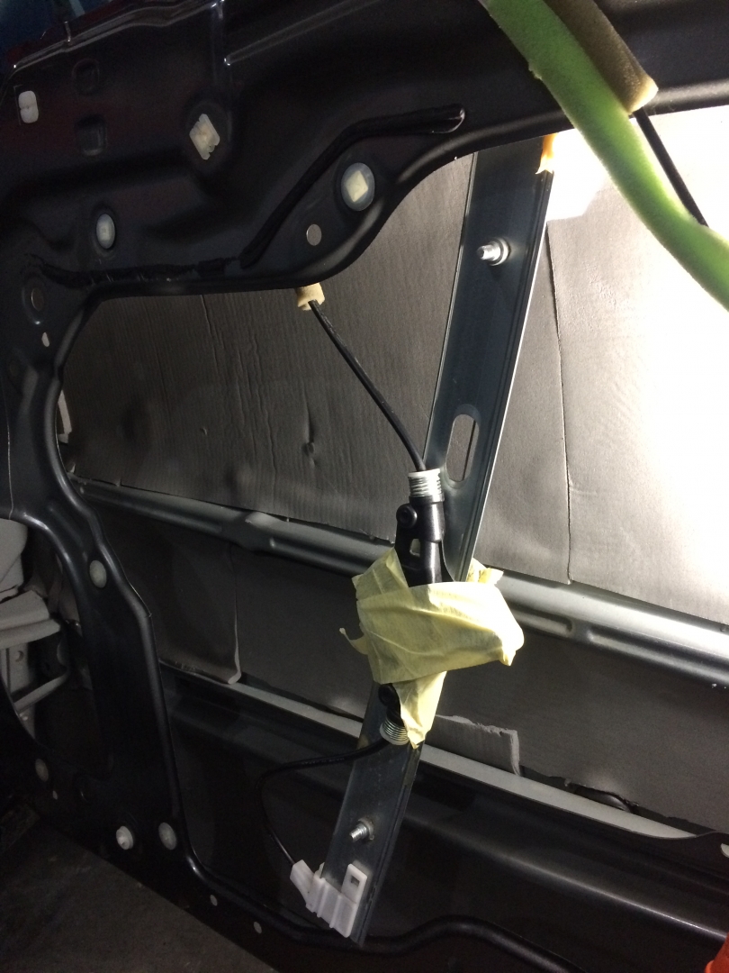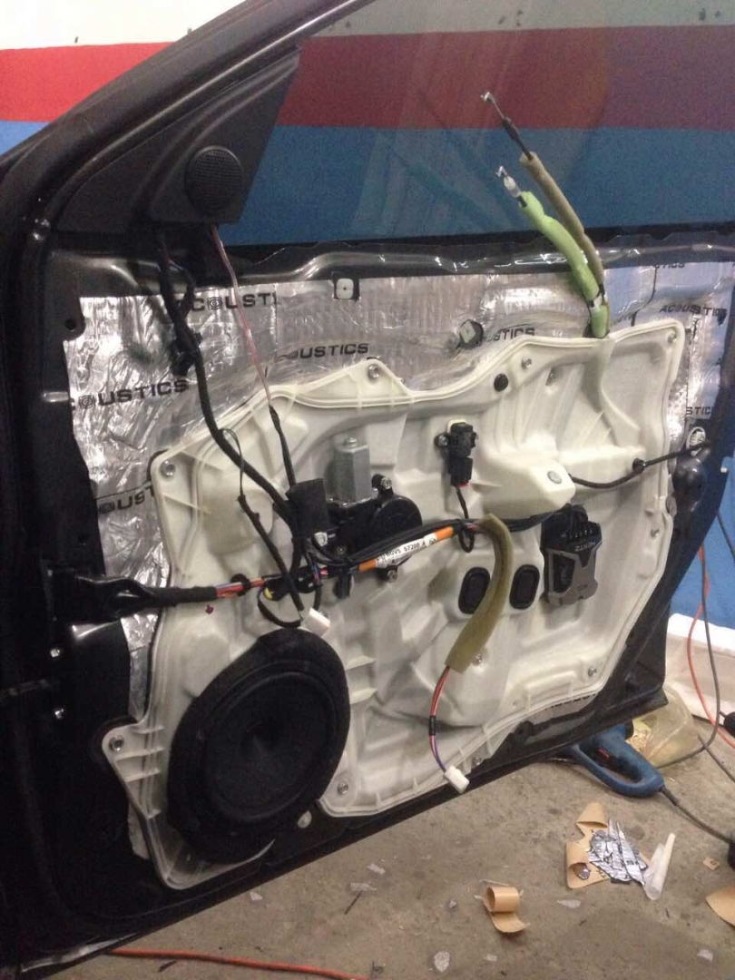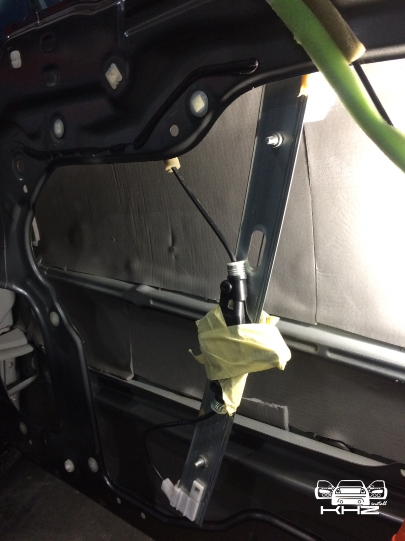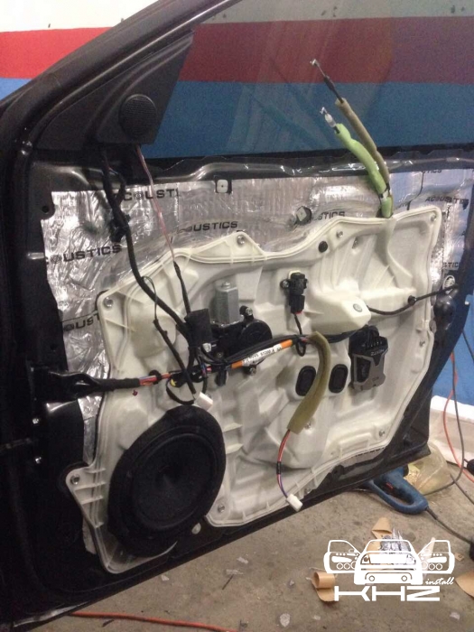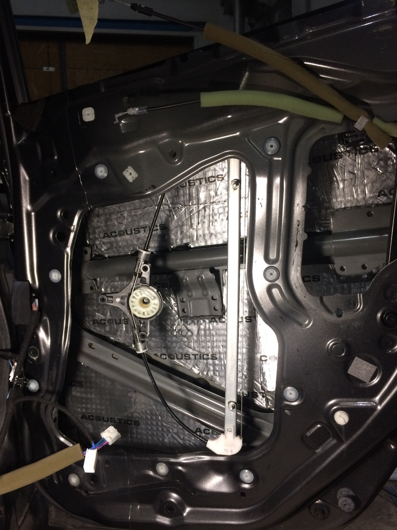 Ми робили тест за вагою, вирішили зважити акустику штатну і ту, що будемо ставити, і так цифри: штатний динамік важить 300 грамів, і це разом із подіумом, Герц важить 1100 грамів, Фокал - 1 кг, я думаю, різниця буде відчутною. І так тепер перейдемо до шумо-віброізоляції, це один з основних чинників у побудові правильної системи. Нам потрібно було знешумити 4 двері і ляду багажника. Чому вона потрібна? По-перше, за умови правильної шумоізоляції дверей вони перетворюються на закритий простір, так званий короб під акустику, і вона починає грати гарно та басово. І по-друге, прибирає зайві звуки поза автомобілем і додає комфорту в автомобілі, тим самим підвищуючи гучність і якість акустики. І почнемо з того, що двері ми розбираємо, знімаємо пластикову заглушку, відкручуємо напрямні склопідіймача і фіксуємо скло про всяк випадок.