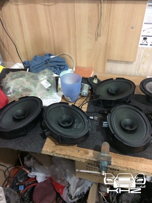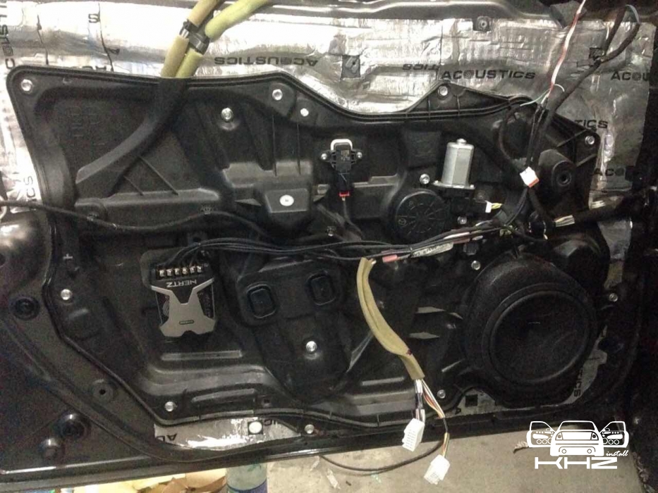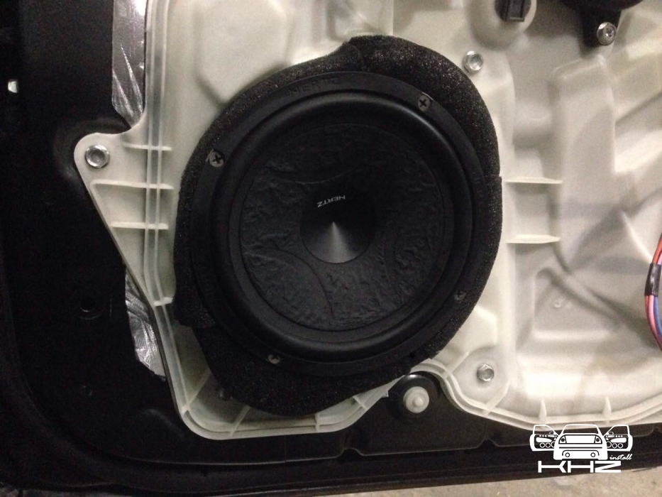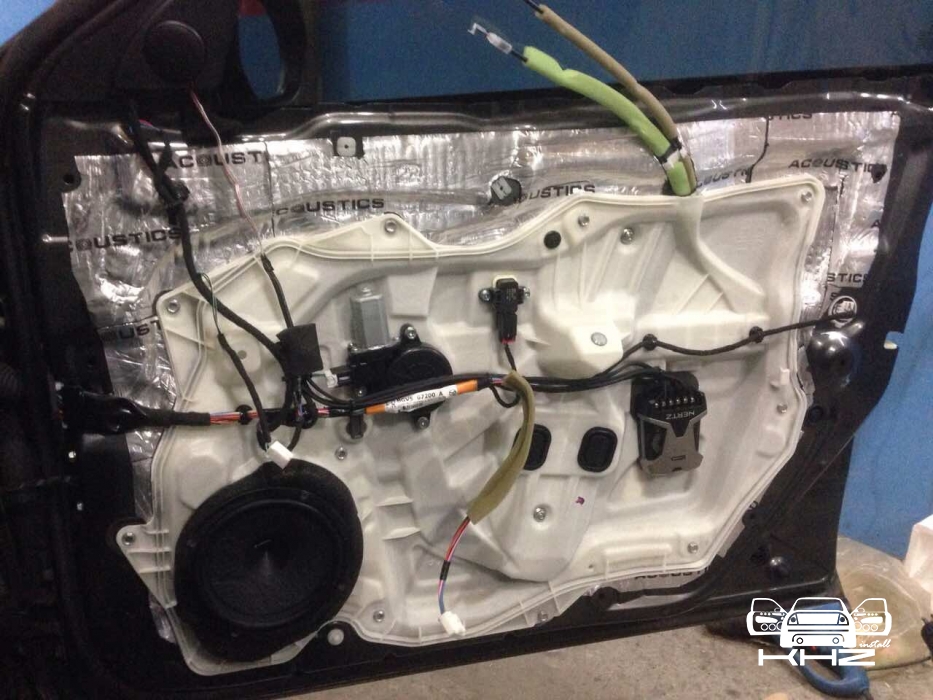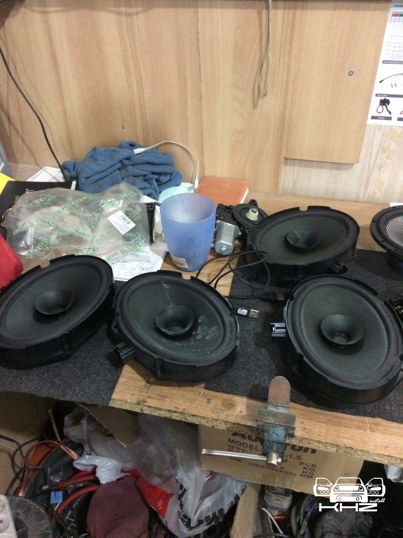 Динаміки стоять як рідні і ми проставки закріпили в штатні кріплення! Далі ми підключаємо всю акустику: ззаду - коаксіальну, а спереду - компонентну, розміщуємо кросовери на заглушці акуратно і кріпимо пискавку в штатне місце на термоклей, який під час демонтажу легко знімається і нічого не псує.