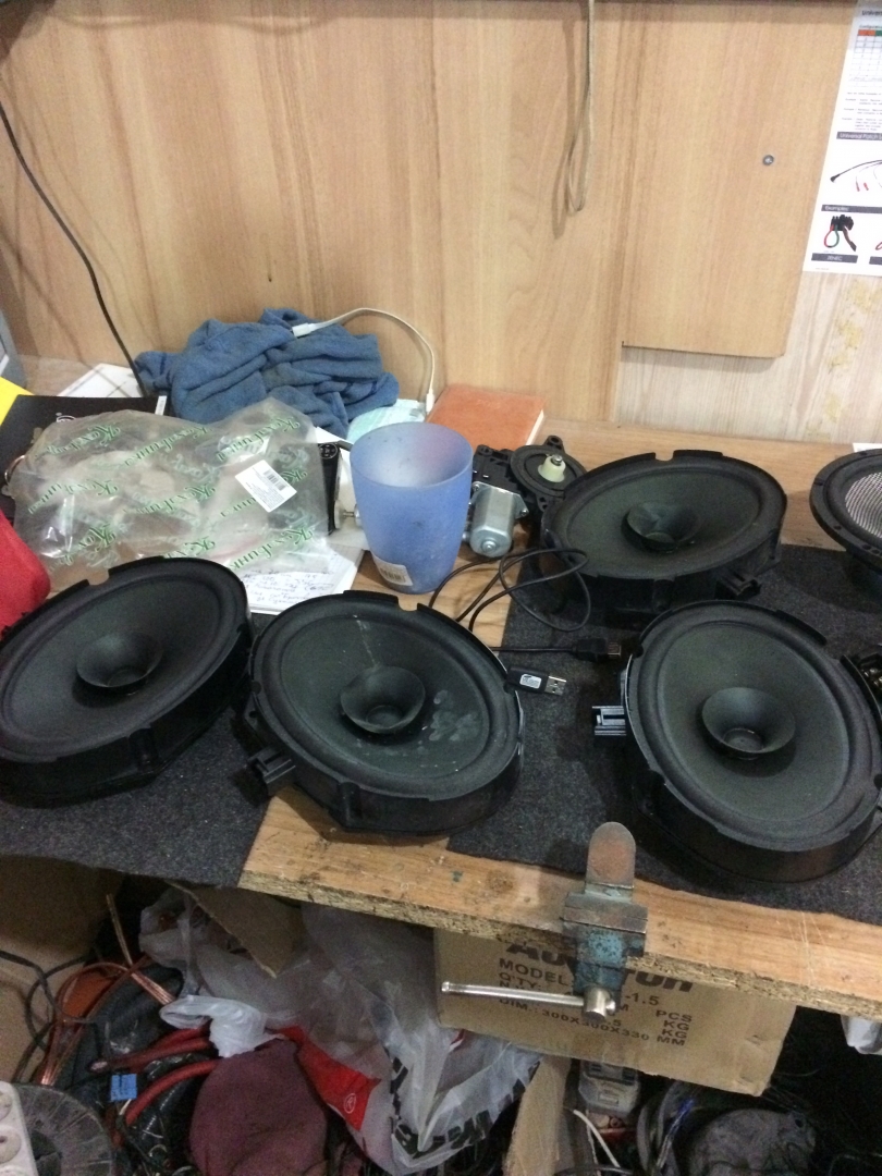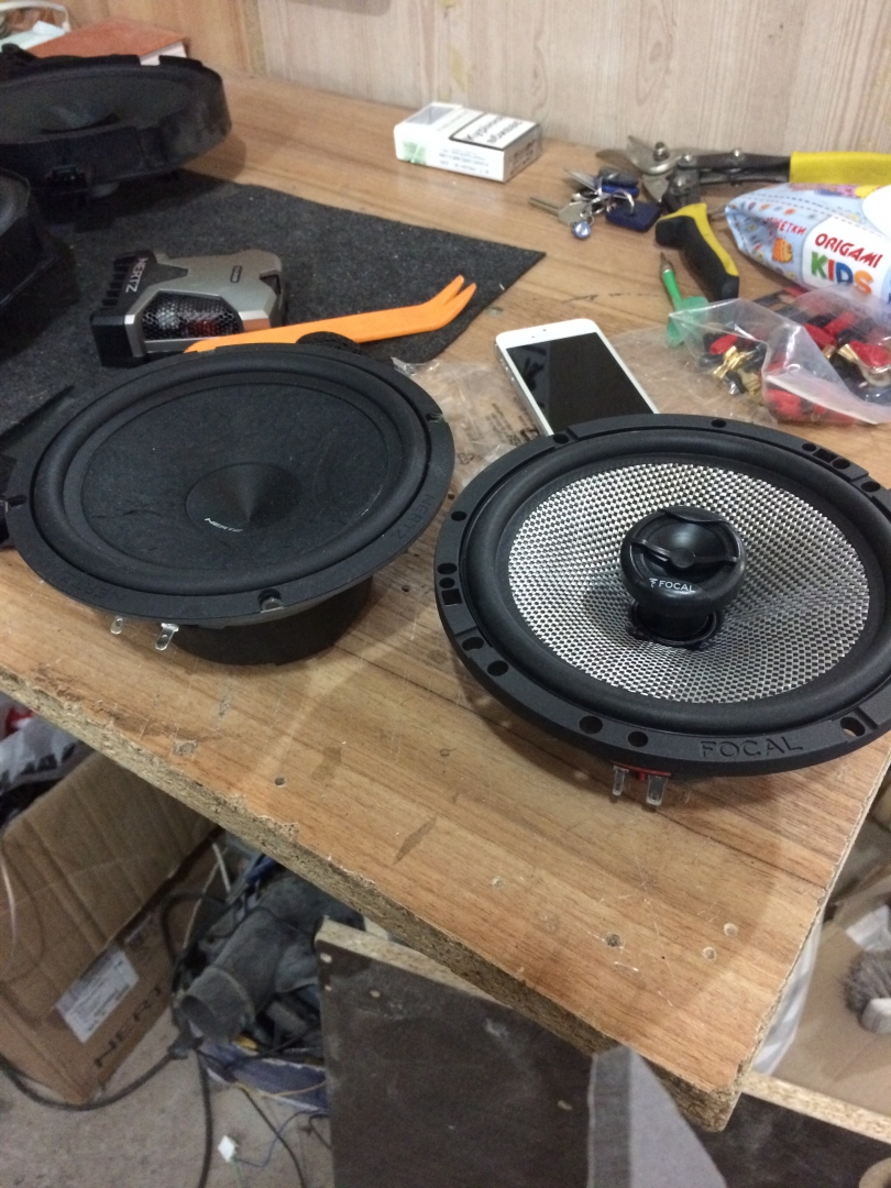 Дуже хороша акустика середнього бюджету для побудови відмінної акустичної системи. А ось що ми дістали з дверей мазда 3, це штатна акустика, у вигляді овалів 5х7 розміром, і магнітом в п'ять копійок, ця акустика не має права жити в такому хорошому автомобілі.