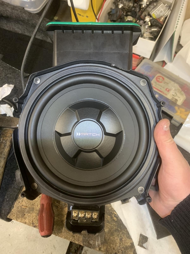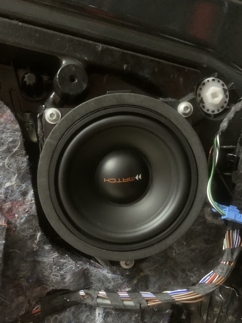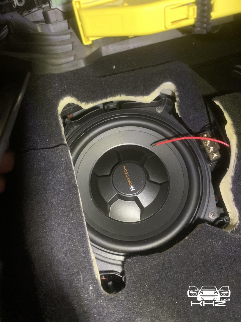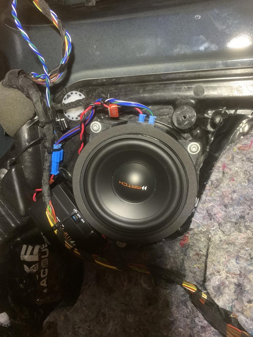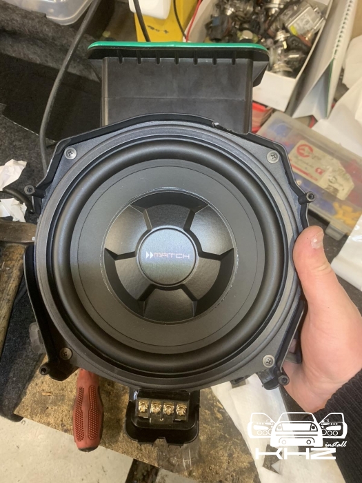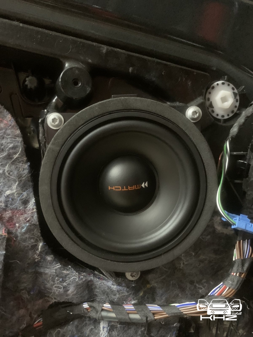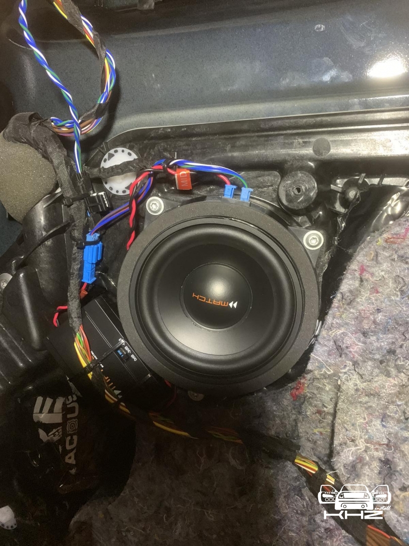 А нові за конструктивом схожі, але значно доопрацьовані і посилені, що дасть набагато вищий результат і глибше низькі частоти, все по тому, що все, що штатне робиться, це зроблено просто щоб було а не на результат. У підлозі динаміки стоять у пластикових коробах з трубою, яка робить деякий об'єм для динаміка, дістаємо короба та закріплюємо у штатні місця нові динаміки так само бренду MATCH, тієї ж серії – далі динаміки підключили у потрібному опорі та збираємо конструкцію у зворотному порядку.