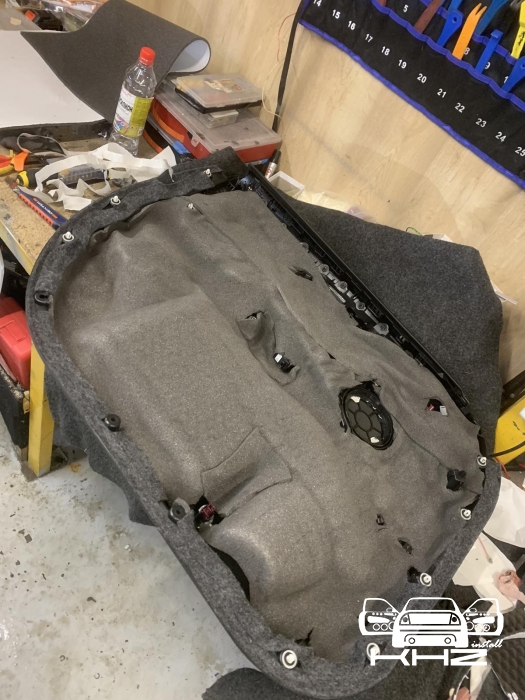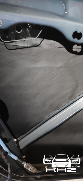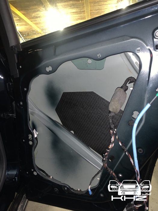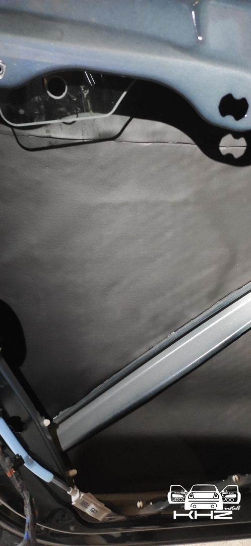 Далі у нас доробка пластикового щита, так само віброізоляцією, закочуємо його щільно - і це третій шар який гасить шум, що залишився з-за. А також додає жорсткості даної конструкції. І добре вкочуємо, правильно обробити щит, не так просто, тому що він дуже вигнутий і багато ребер. Динамік стоїть штатний.