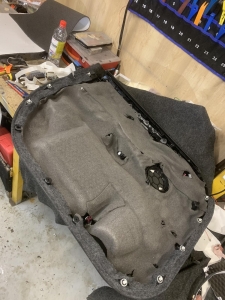 Стартуємо з шумоізоляції дверей, вона дуже важлива як і для комфорту так і для правильного оформлення акустики, адже коли йде шум з-за, ви можете більше зосередитися на якості звуку та глибині. Розібрані двері виглядають так: