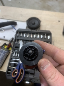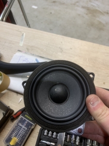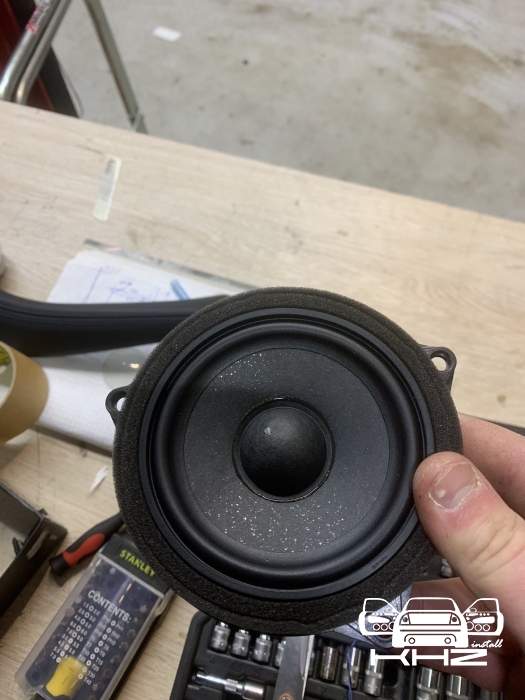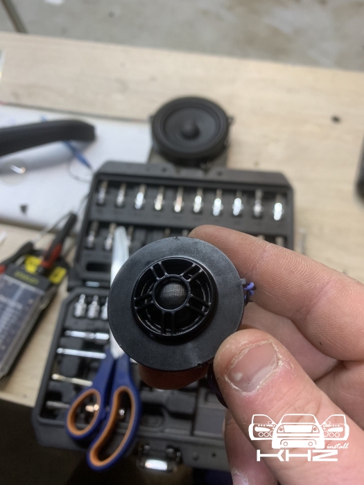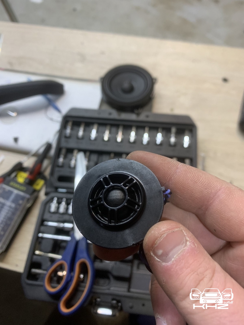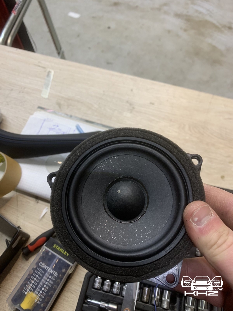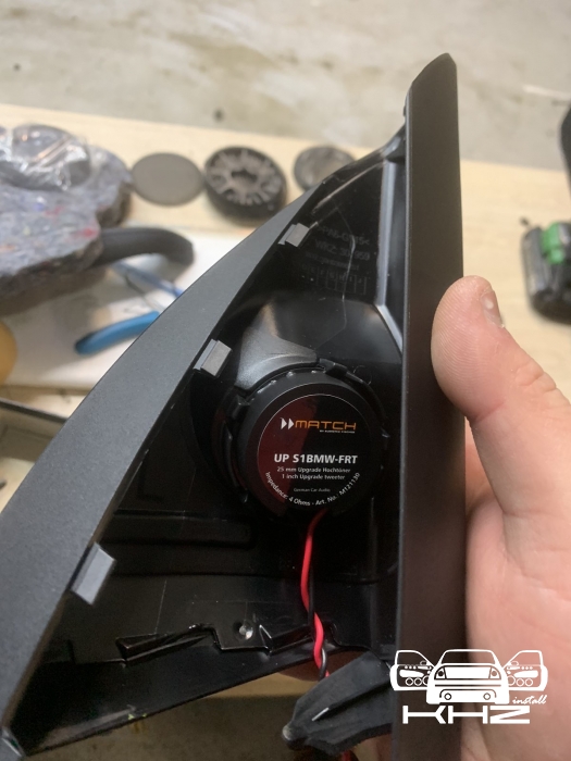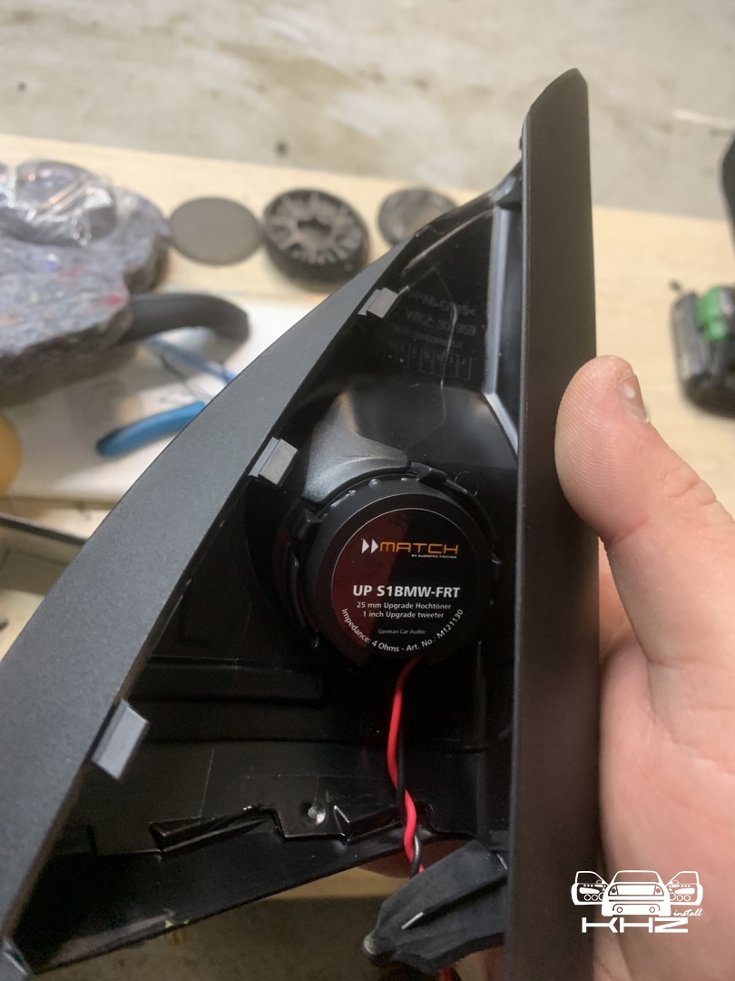 Ідемо далі і в нас на часі заміна фронтальної акустики в BMW X3 G01, штатна акустика - як ми й говорили дуже слабенька, пластиковий кошик і картонний дифузор, це класика не дорогих аудіо компонентів, які є і нормально - але ми це виправляємо, акустика підібрана німецького бренду MATCH, це акустика сегмента ціна-якість за дуже солодкою ціною, вона штатна - тобто, зроблена саме для БМВ кількох моделей, вона йде під штатні кріплення та конектори, але конструкція динаміків на голову вище, металева рама, хороший неодимовий магніт, і потужніший дифузор з просоченням. Це дуже зручно - круто підходить, без глобальних доробаток, для тих клієнтів хто не хоче сильно мудрувати з установкою. Так само в комплекті акустики для BMW X3 G01 йде і твітер, так звана пищалка, для прикладу ось такий штатний твітер йде, багато пластику і мало динаміка, а новий твітер - клацнути в штатне місце без доопрацювань, і все по штатному.