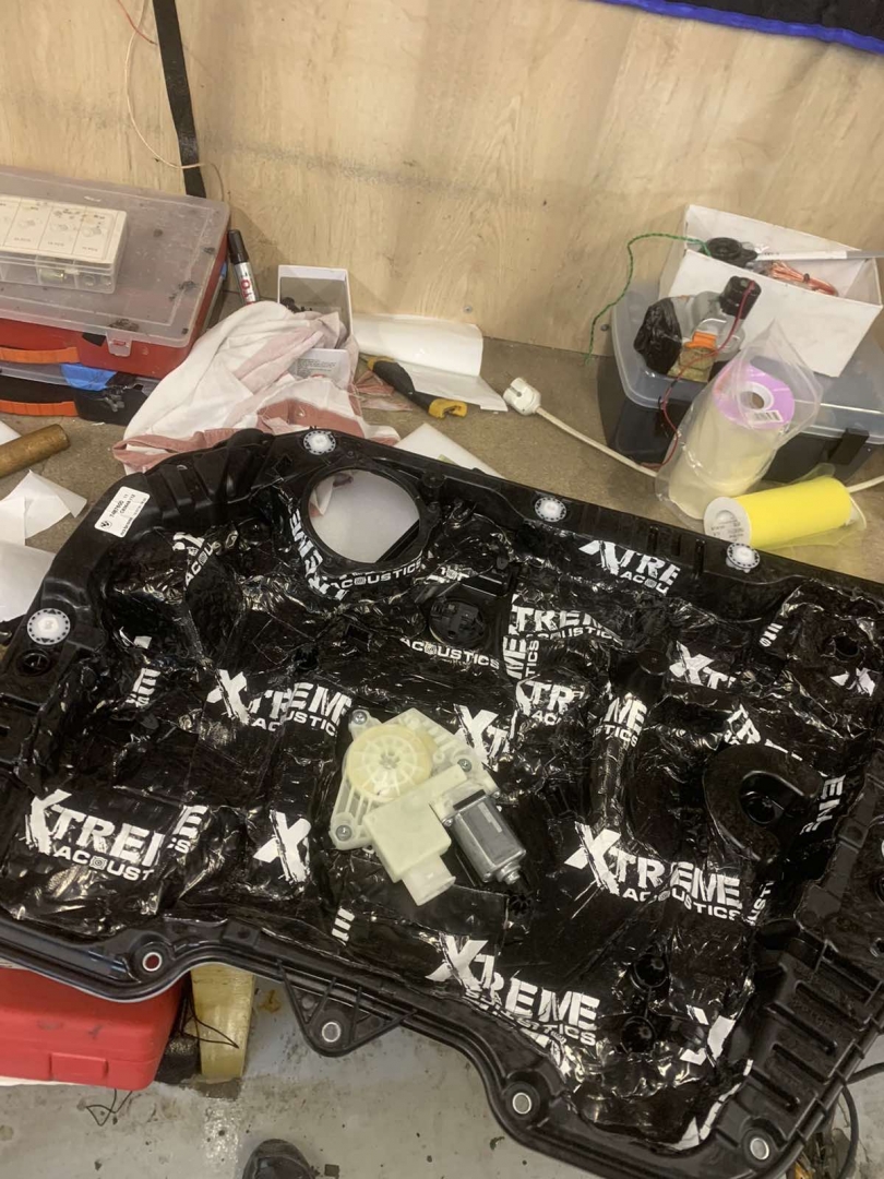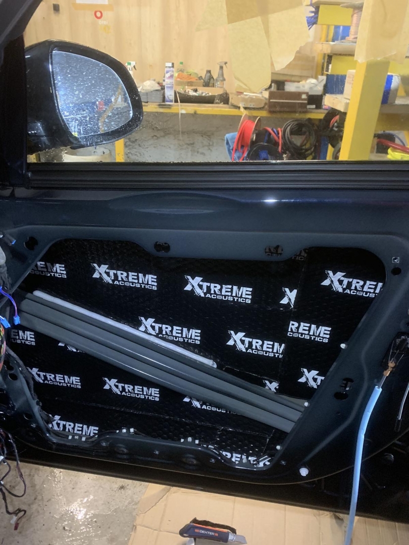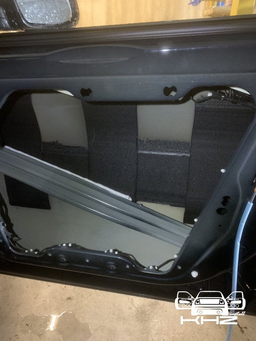 І останній етап шумоізоляції BMW X3 G01 дверей - це дверна карта, її ми зміцнюємо листами віброізоляції, щоб зміцнити і прибрати резонанс, далі затягуємо картку повністю м'яким шумопоглотувачем, який фінішно не залишить шансів стороннім звукам, він на самоклейці і укладаємо по всій площині. По контуру карти наносимо ще антискрип, щоб усунути тертя карти з металом. На цьому двері по шумоізоляції готові - результат перевірений роками, ставати дуже тихішим і комфортнішим, так само без усяких скрипів - оскільки за досвідом, чим новіше машина тим менш якісно вона зроблена.