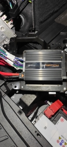 Все збираємо і в зібраному вигляді, все виглядає так – процесорний підсилювач новий, так само посилює та покращує сигнал на штатній акустиці, яку ми не змінювали, це центральний канал і тил акустика – але скажемо так – що навіть штатна акустика почала грати соковитіше, адже їй важливо, наскільки рівний сигнал до неї прийде, і її завдання просто його відіграти. Виходить, що ми прокачали сигнал на кожному динаміки в даному автомобілі, штатний він чи новий не має різниці, все це можна буде замінити і з часом, головне зробити якісний фронт та сабвуфер – фронт є, сабвуфер буде другим етапом.