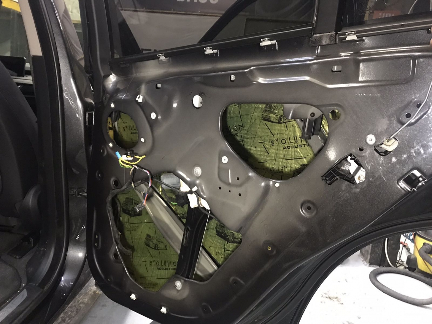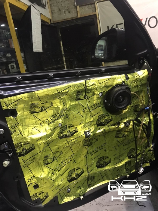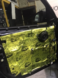 Двері робляться в 4 шари: зовнішня і внутрішня частина металу викочується віброізоляцією, на внутрішню клеїться шумо-тепло ізолятор, і на карту (після посилення віброю) клеїться Acoustics Damper, який виконує роль шумоізолятора й антискрипу.