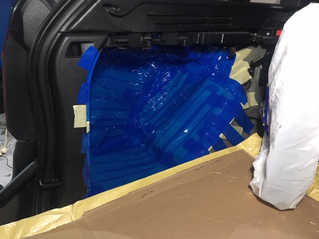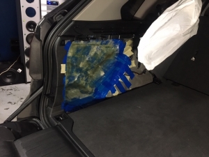 Готуємо і виклеюємо нішу скотчами, щоб не зіпсувати поліефіркою обшивку і наносимо скловолокно, після висихання обрізаємо зайве і готуємо матрицю для подальшої роботи. Окремо ця процедура займає майже цілий день.