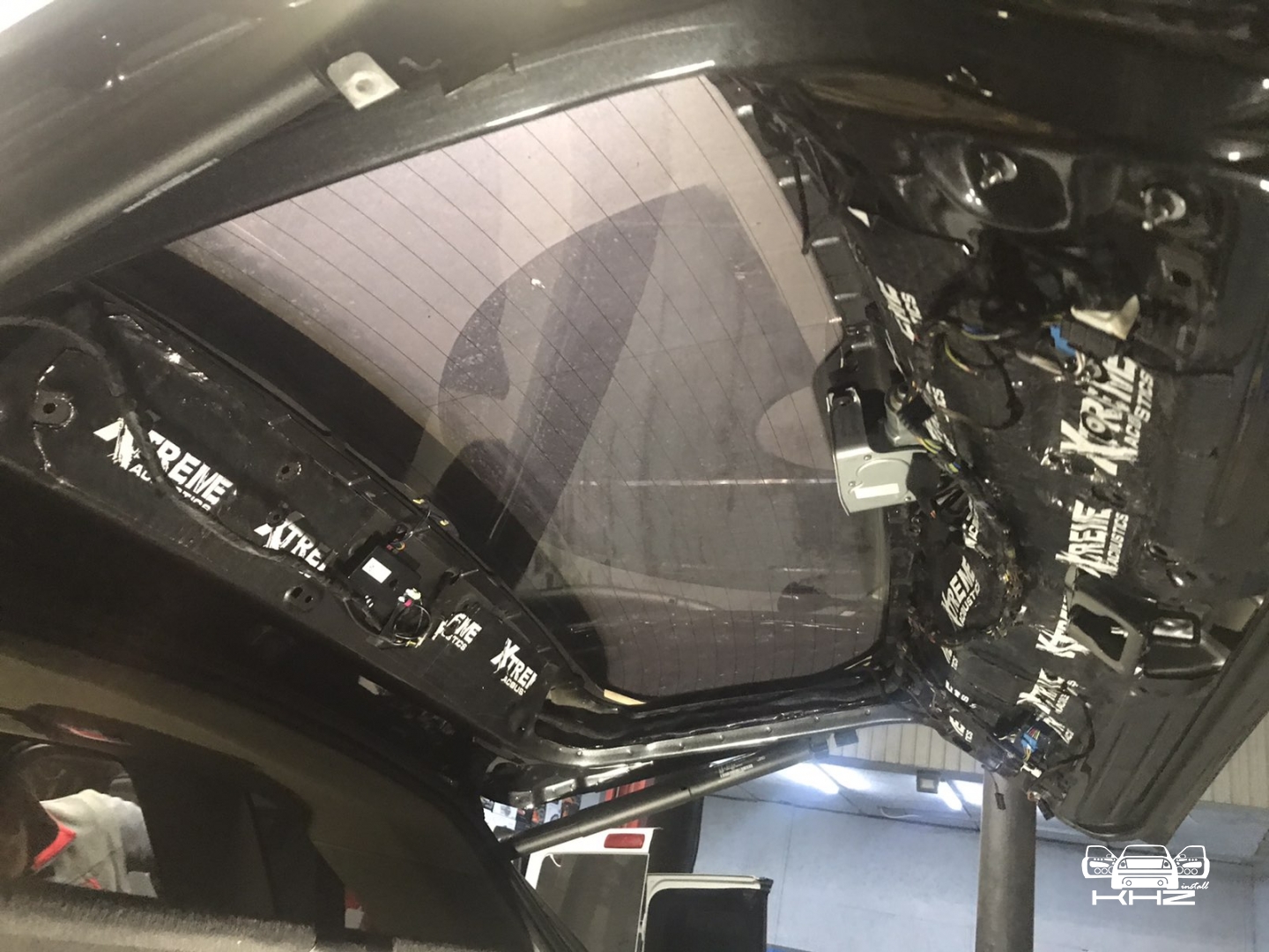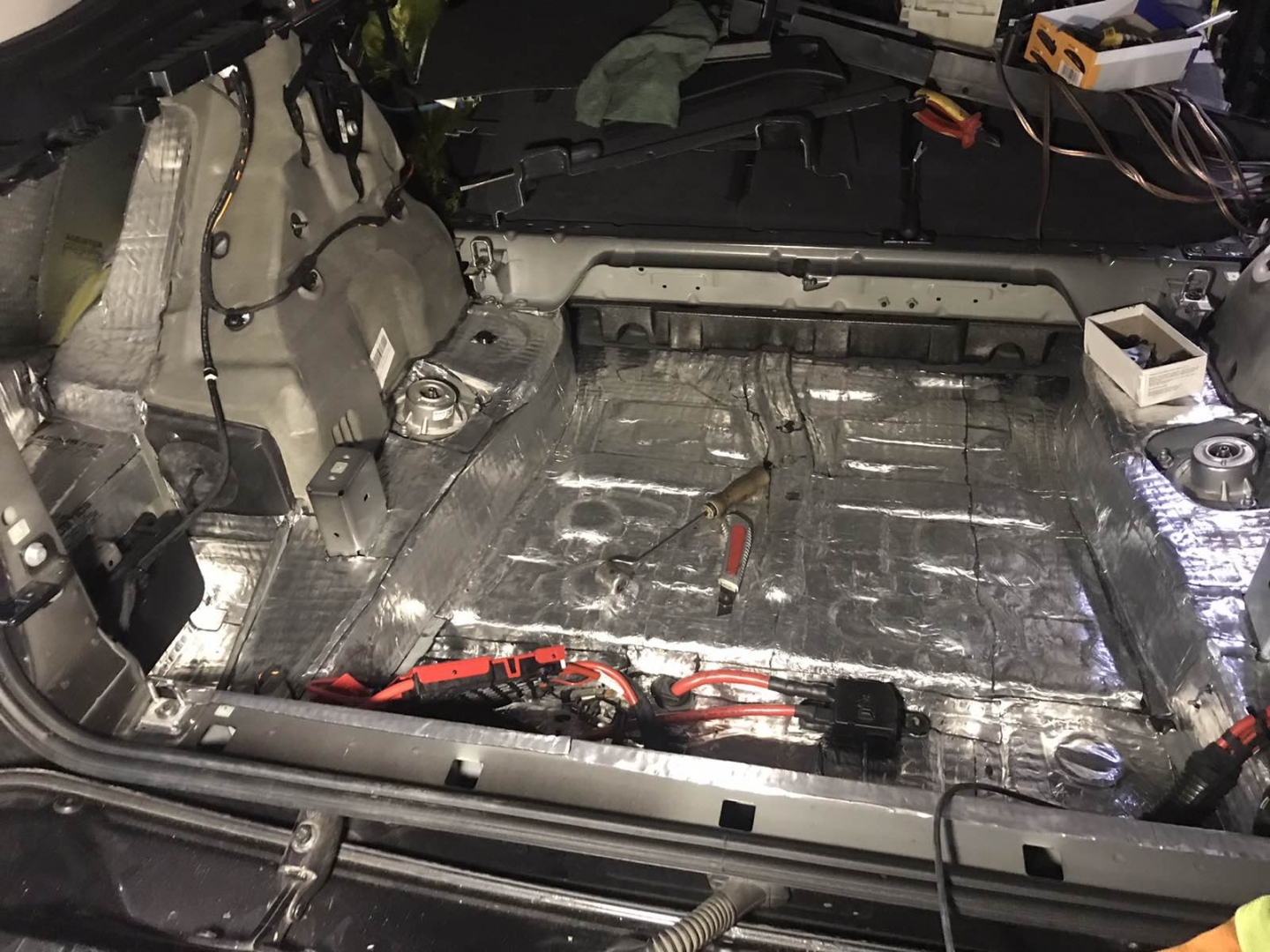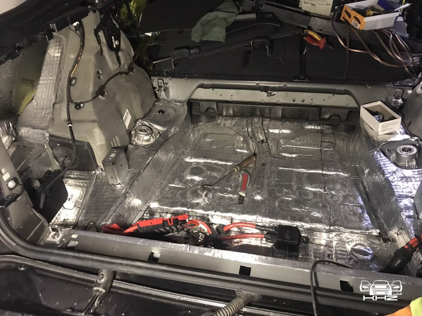 На багажник використали матеріал простіший, але товстіший. А кришку багажника обробили більш легким матеріалом Acoustics Xtreme, він дозволяє не так сильно навантажувати опори кришки під час відкривання.