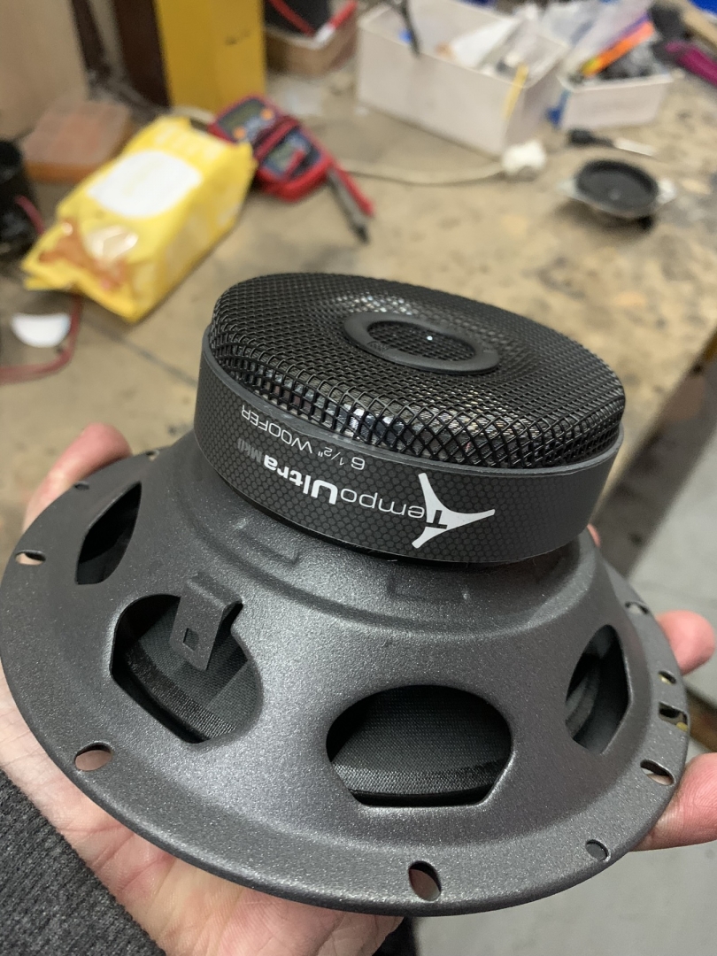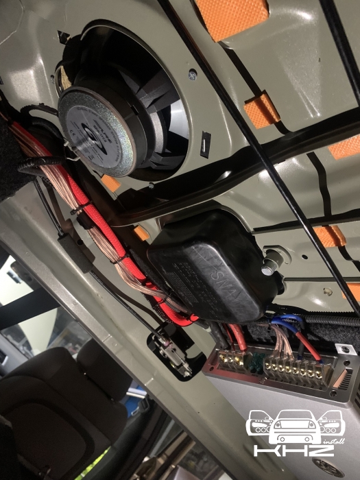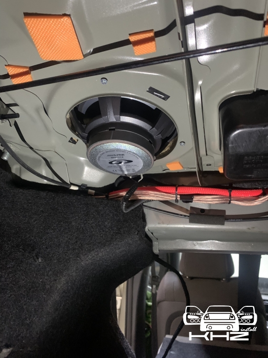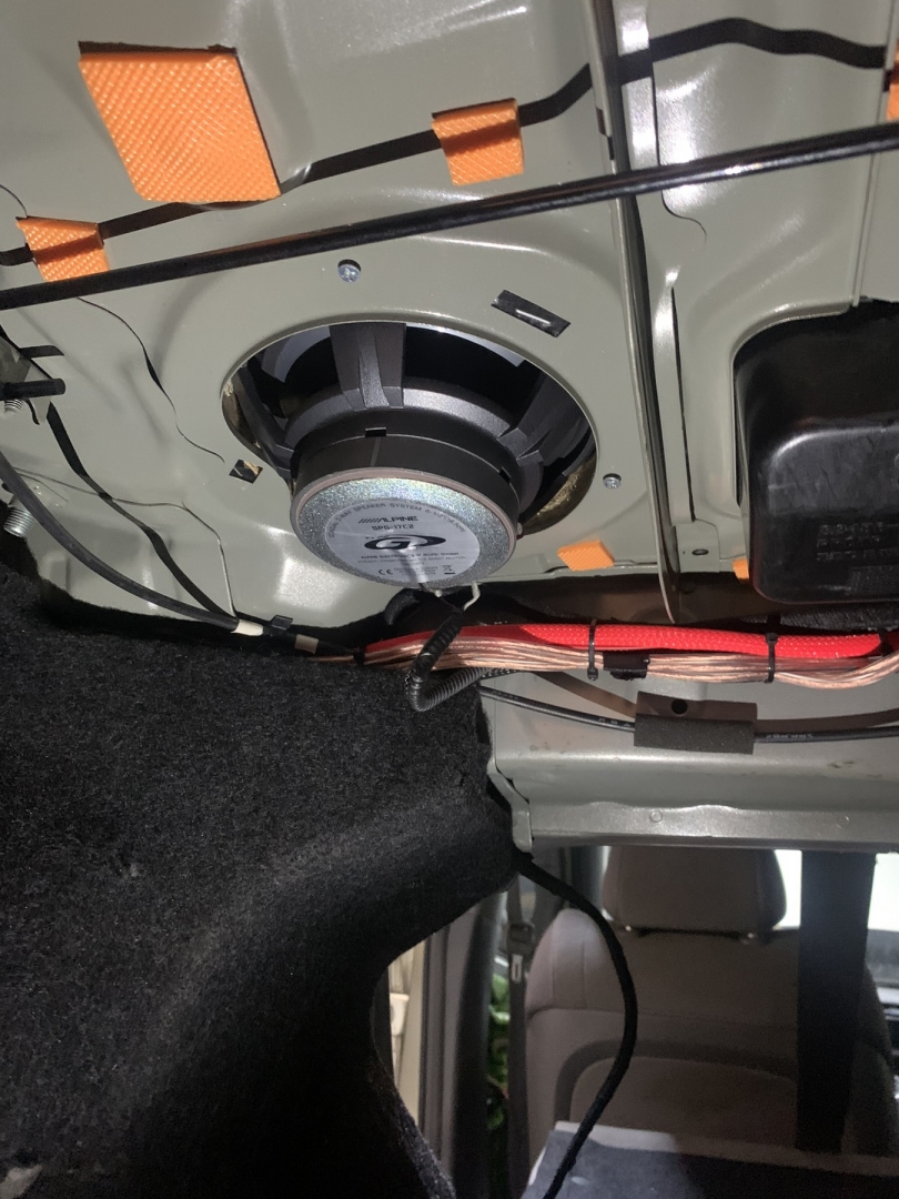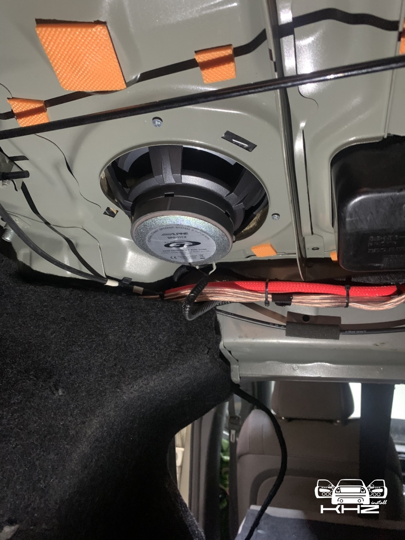 Далі йде установка акустики Honda Civic 4D, в даному автомобілі вже була встановлена акустика бренду Alpine - не високої лінійки, але по-перше вона не зрозуміє підсилювач - а по друге спереду стояли коаксіали з вбудованим твітером - і вся сцена була в ногах, а об'ємності звучання взагалі не було. По цьому фронтальну акустику ми мінятимемо - а та що стояла в полиці - залишиться, бо вона буде просто для підзвучки. На фронт ми встановимо хорошу компонентну акустику Morel Tempo Ultra 602 - це акустика високого класу з високою деталізацією звуку. Мідбаси встановлюємо в двері через проставні кільця з фанери, щоб магніт динаміка не заважав склу - так само перед цим ми ще в двері затягуємо нову акустичну проводку, так як потужність буде більше, а перетин кабелю там йде дуже тонкий. Виглядає так: