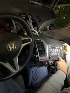 Магнітола в Honda Civic 4D, був так само підібраний варіант штатної магнітоли Honda Civic 4D, яка зроблена саме для даного автомобіля - і підтримує правильне підключення і коректну роботу всього, зараз такі магнітоли користуються попитом - так як, вони більш легко інтергуються у всі автомобілі і мають більший екран ніж у універсальних автомагнітол, які ставляться через перехідну рамку, а також більш широкий спектр корисних налаштувань та функцій. Для повної інтеграції магнітоли необхідно розвести по торпедо кілька антен - мікрофон - виходи під юсб і багато різної проводки, так само замотати в м'яушки всі з'єднання - щоб нічого не деренчало, і перед збиранням протестувати все на коректну роботу.