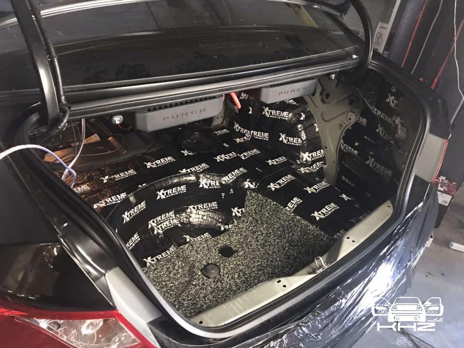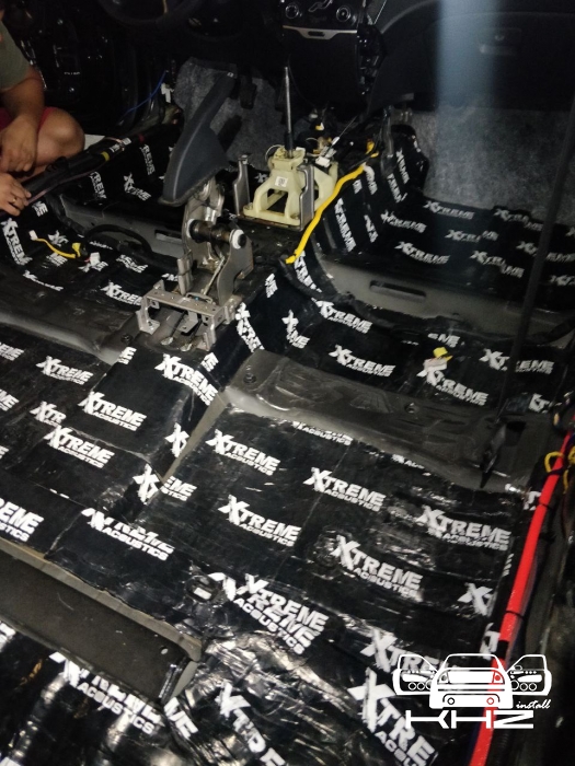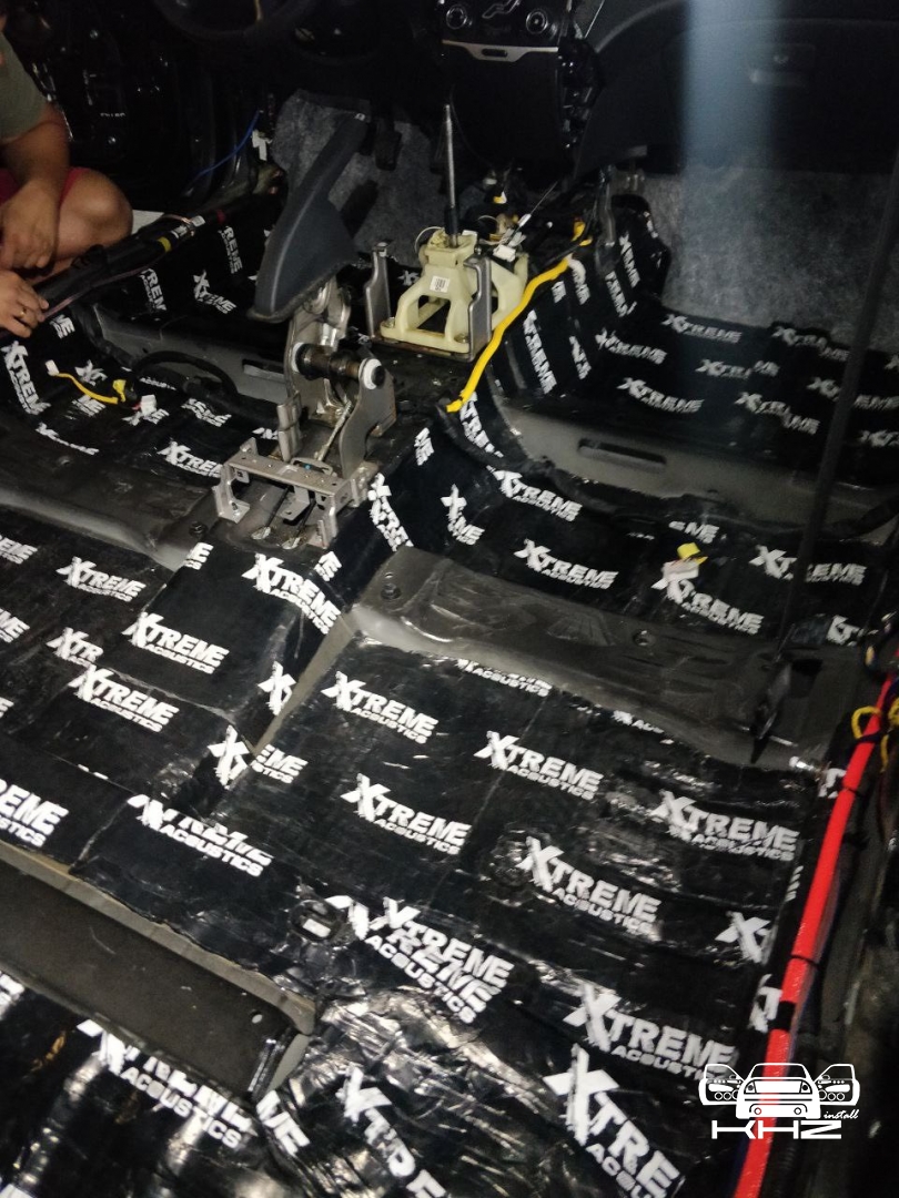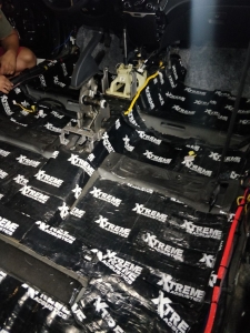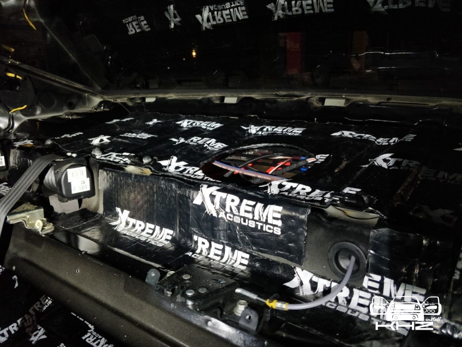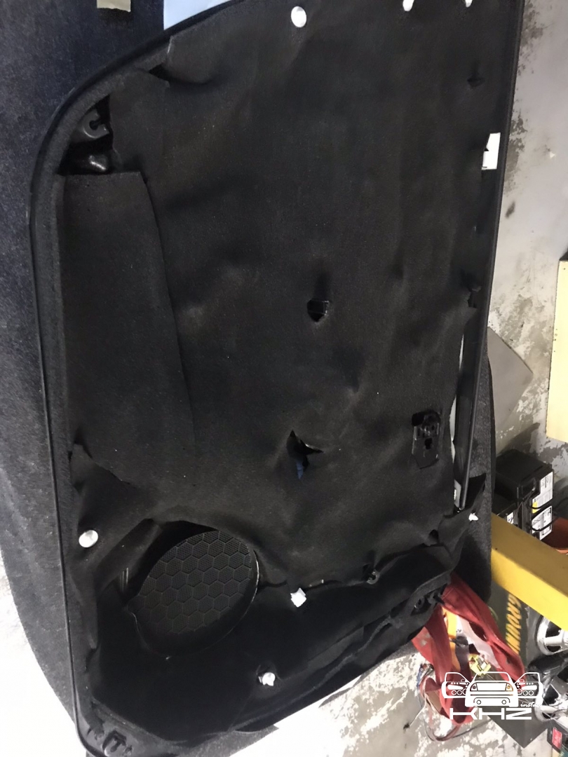 Стартуємо, перед побудовою аудіосистеми покажемо як ми зробили шумоізоляцію автомобіля, ми зробили автомобіль полегшеними матеріалами бренду Acoustics XTREME, всі елементи оброблені саме цією віброізоляцією та оброблені антискрипом і тепло-шумоізолятором. Двері зроблені в 4 шари, перший шар поклали на зовнішню частину дверей зсередини, матеріал товщиною 2.2 мм і добре укочений, на нього нанесли матеріал тепло-шумоізолятор Софт 6, який працює як термос взимку і влітку зберігає прохолоду довше. Третій шар шумоізоляції дверей Hyundai Sonata YF полягає в укладанні матеріалу на щит в дверях, він дуже рифлений, але це не завадило зміцнити його ще більше, і захистити від проникаючи звуку. І останній етап це підготовка дверної карти, вона армується шматками віброізоляції і потім затягується м'яким матеріалом пористим, щоб прибрати всі скрипи і тертя карти об елементи дверей.