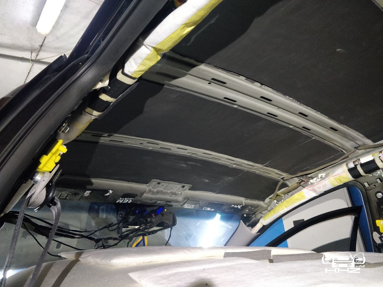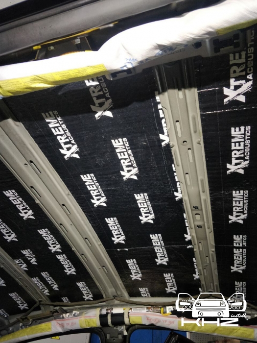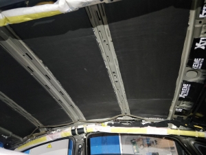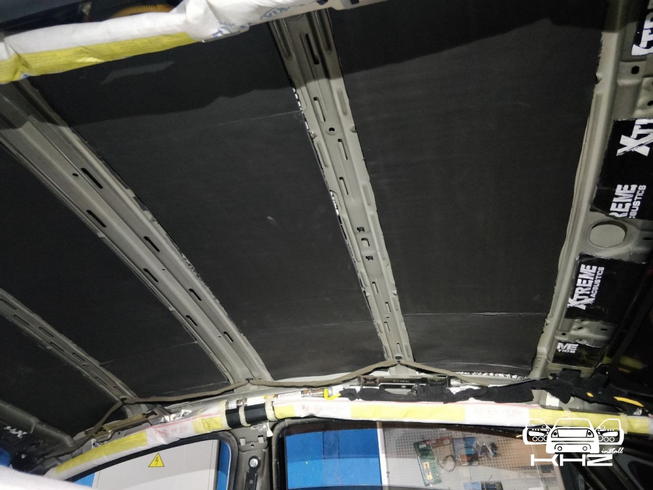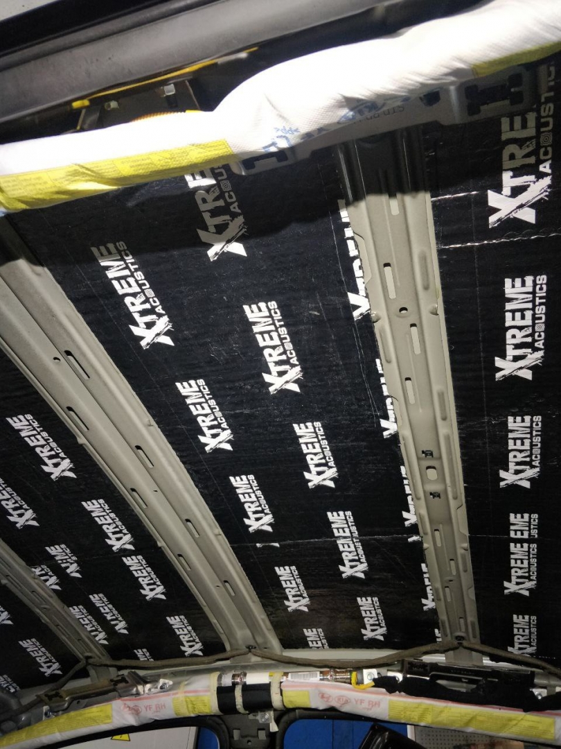 Далі дах автомобіля, оскільки шумоізоляція автомобіля йде зверху вниз, починаємо саме з нього, демонтуємо дах - знежирюємо метал і прибираємо штатну шумку у вигляді ватину де не де. І обклеюємо дах віброізоляцією без укочування ребер жорсткості, добре викочуючи. Другим шаром укладаємо матеріал Софт 6, який працює як термос і плюс сендвічем з віброізоляцією не пропускає шум всередину. І найважливіше це увага до дрібниць, а саме антискрип всіх елементів, які можуть зіпсувати ідилію після шумоізоляції даху та інших елементів. дах готовий і тепер під час зливи або по трасі там буде тихо.