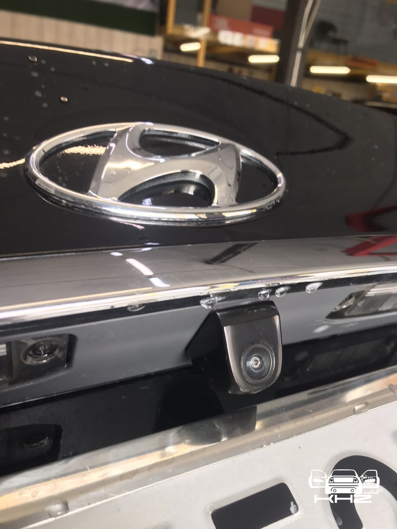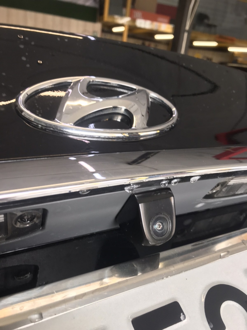 Так само провели і встановили камеру заднього виду в Hyundai Sonata, в універсальному виконанні, яку врізали між плафонами підсвічування, і закріпили зсередини. Камера в трикутному виконанні виглядає як штатна - не піддається вандалізму. Камеру встановили INCAR VDC-007HQ.