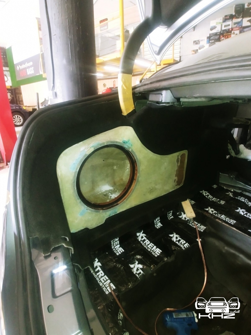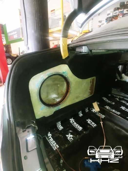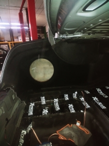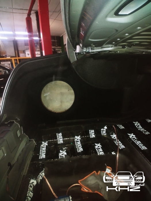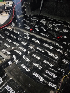 Багажник добре виклеєний як і вся інша машина з боковинами і колісними арками, поверх наносимо м'який тепло-шумоізолятор, по всій площині, де укочена віброізоляція. І фінально ще була зроблена кришка багажника, так як при повній шумоізоляції - якщо пропустити якийсь елемент, ви це відразу почуєте.