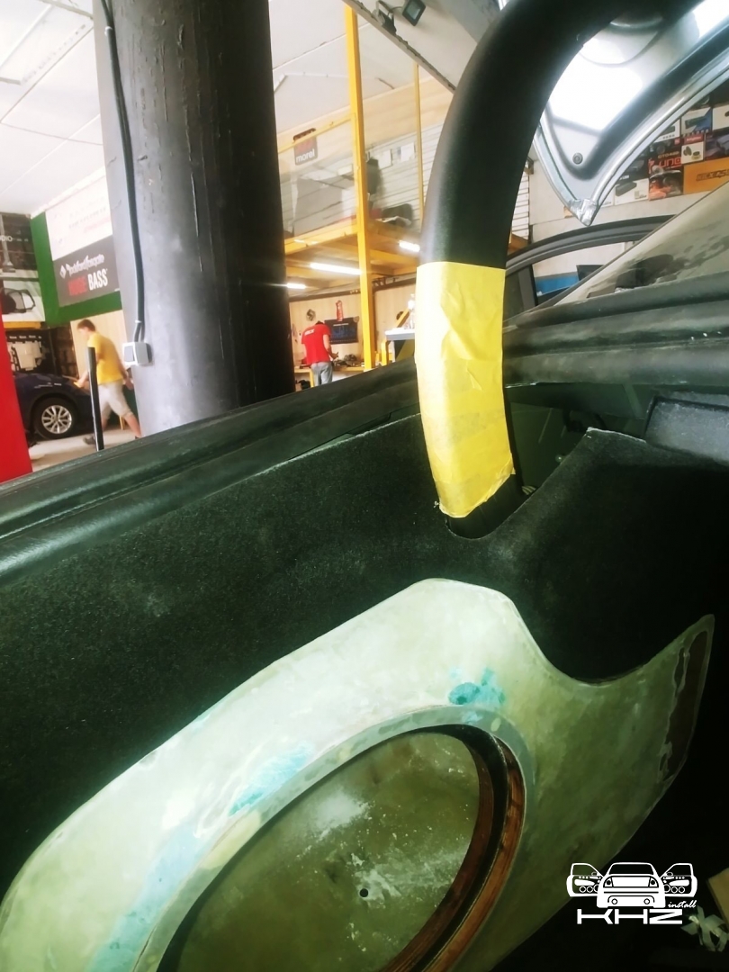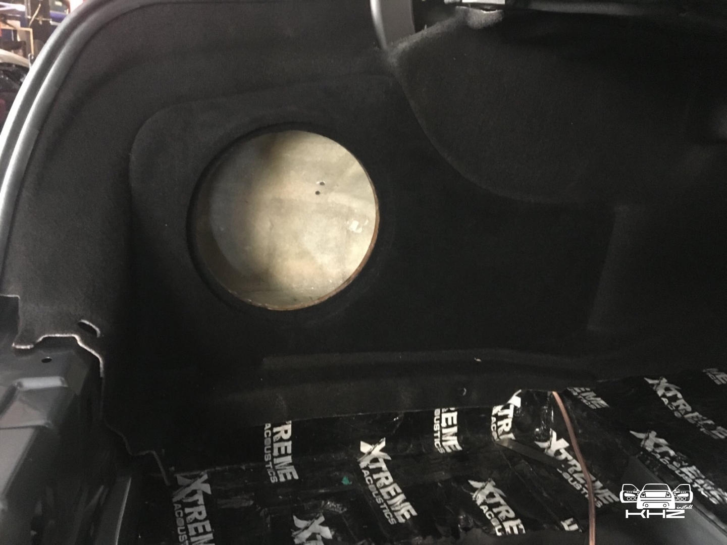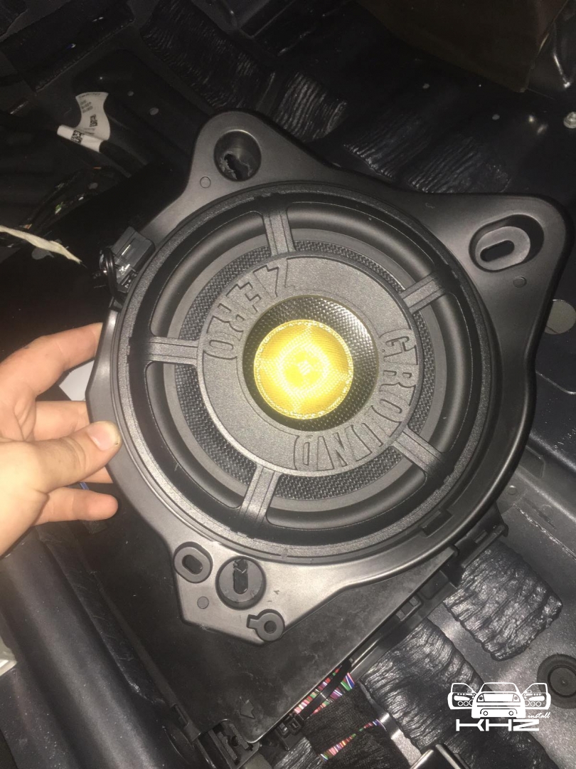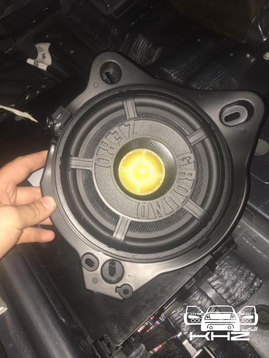 Так само із заводу в ногах стоїть один мідбасовий динамік і одна заглушка, на другий не вистачило на заводі... Ми в ці місця будемо встановлювати два мідбас динаміка розміром 20 см, штатний якщо не помиляюся 16,5 см. Динаміки для цього завдання ми взяли так само бренду Ground Zero, так само більш кращої лінійки і вони зі штатними кріпленнями під цю модель, хоча вони не 100 відсотків стають а потребують доопрацювань. Так само для підключення динаміків ми проводимо нову мідну проводку для підключення кожного нами встановленого динаміка, так ми будемо точно впевнені в перетині кабелю і в тому, що буде хороша і цілісна передача сигналу.