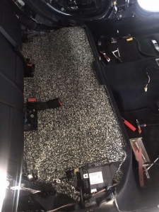 Так само з підлогою ми й обробляємо з салону як передні колісні аркиMercedes E-class так і задні разом з шумоізоляцією підлоги і багажника, так як замовник попросив зробити максимально тихо - ми запропонували ще зробити колісні арки ззовні автомобіля, задні арки мають ганчір'яний підкрилок - з цього ми обробляємо тільки кузов у 2 шари, шар товстої віброізоляції на метал і зверху тепло-шумоізолятор, і все це притискається ще підкрилком. Передні підкрилки пластикові, їх ми обробляємо віброізоляцією, щоб прибрати шум каміння, що летять від коліс, піску і води, і так само обклеюємо метал у два шари, щоб у салоні була тиша.