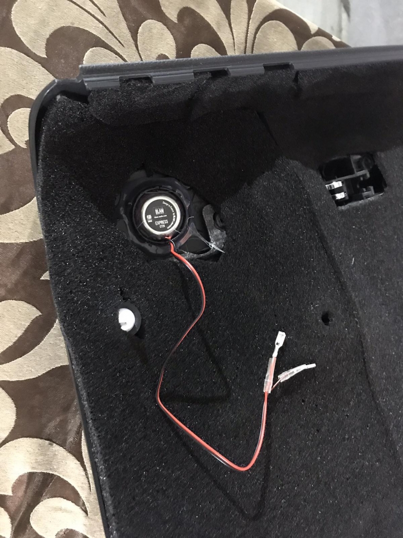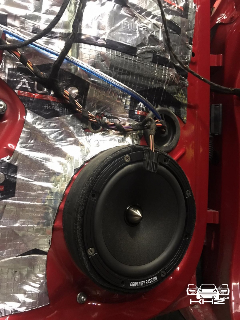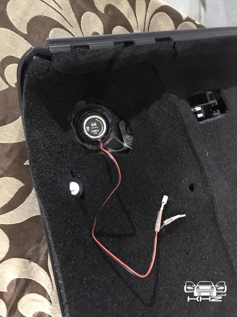 Далі приступаємо до встановлення акустики, на фронт ми підібрали акустику бренду BLAM і лінійку, що трохи вища за найпростішу, яка нормально зіграє у зв'язці з підсилювачем звуку. Це компонентна акустика хорошої якості, і її основний плюс у тому, що вона 2-х омна, і може грати голосніше, ніж інші, і навіть від малопотужного підсилювача. Встановлення акустики проводиться тільки через проставочні кільця з фанери, які ми виготовляємо самі, фарбуємо і закріплюємо до дверей, далі ми затягнули нову мідну акустичну проводку, і потім проставка обклеюється м'яким матеріалом, щоб не було щілин і динамік щільніше приліг до проставки, а ще для під'єднання твітера потрібно встановити кросовер, який розділить частоти між двома динаміками, твітери ми встановили в заводські місця в куточки, має такий вигляд: