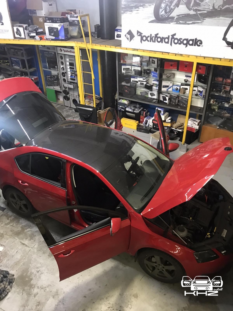 Всім привіт, сьогодні поговоримо і подивимося що ми зробили зі звуком в автомобілі Skoda Octavia A7, це, мабуть, один з найпопулярніших автомобілів як в Україні, так і в СНД, він дуже практичний та якісний, не надто вибагливий, але, як завжди, зі штатним звуком, як практично й у всіх, - повний провал! Звук пластмасовий, розмитий і не зібраний. Ми цей автомобіль робили вже не раз і знаємо що реально зможе виправити питання на будь-який бюджет. Так само у нас стоять завдання поліпшити комфорт в автомобілі за допомогою шумоізоляції дверей і колісних арок. Роботи, звичайно, багато, але у нас, як завжди, є терміни виконання, на таку роботу зазвичай ми беремо два дні, оскільки у нас достатньо майстрів, яким цікавий кожен проект.