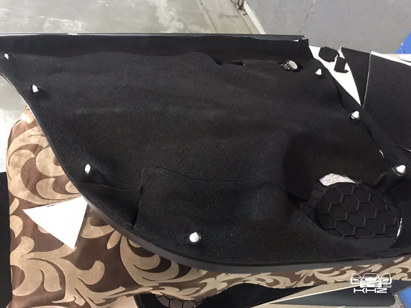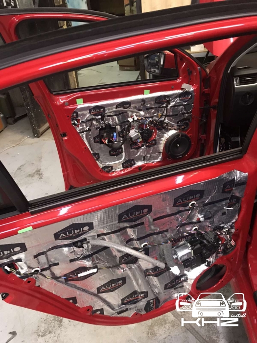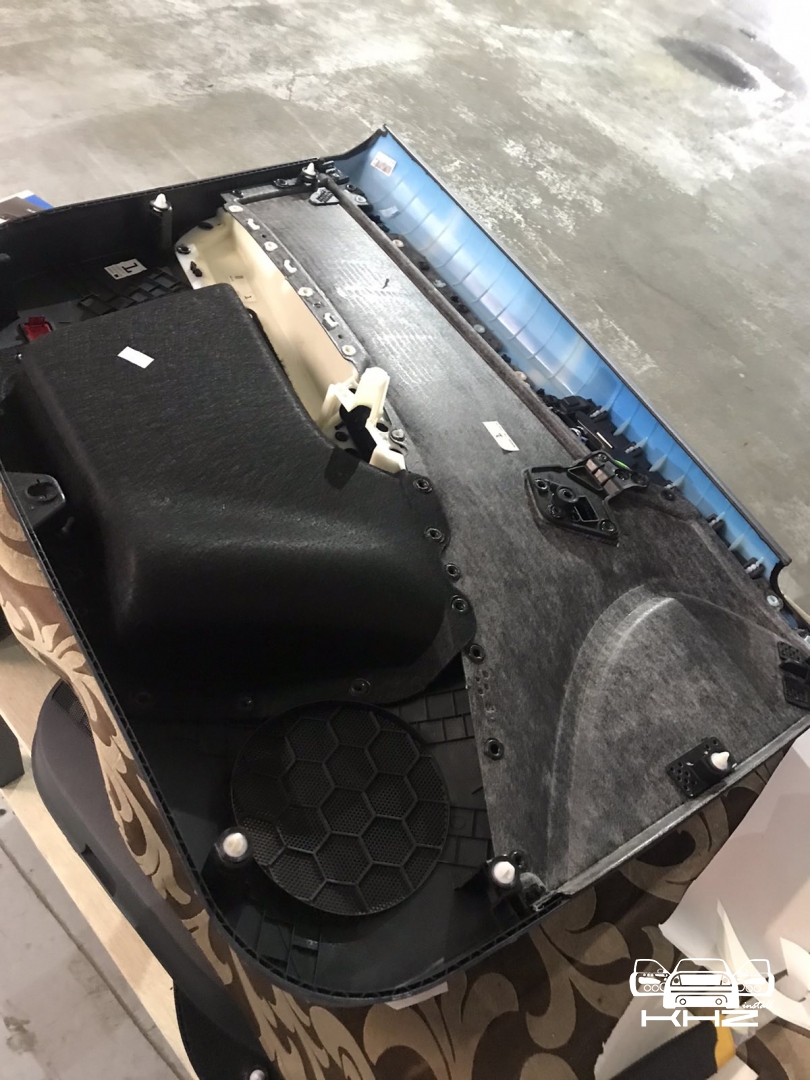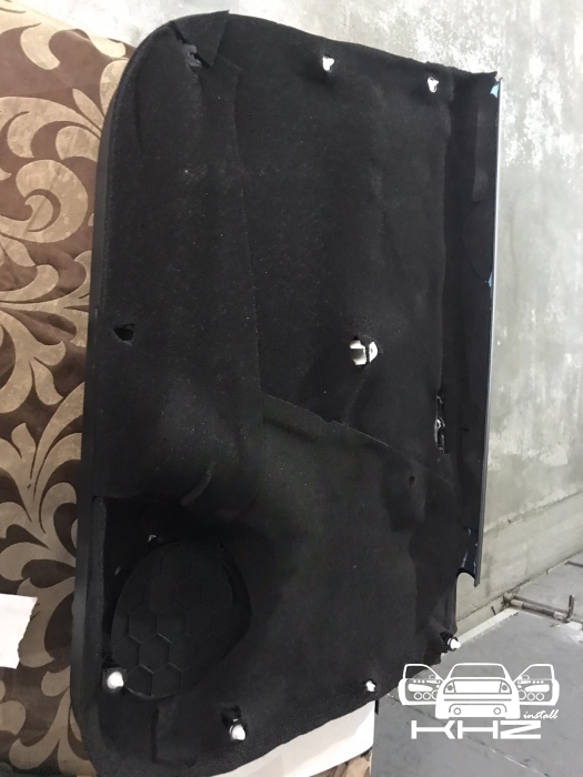 Третій шар - це здебільшого для акустичного оформлення дверей, ми закочуємо метал з усіма технологічними дірками, тим самим оформлюючи двері в закритий простір, що добре впливає на зібраність акустики в дверях і чіткість роботи мідбаса, а також щоб прибрати резонанс від роботи потужнішого динаміка.