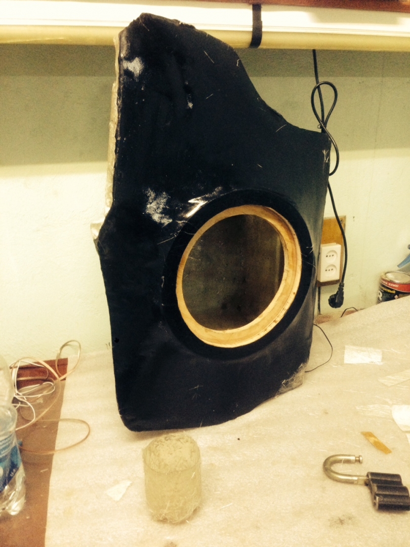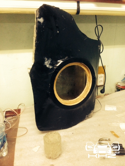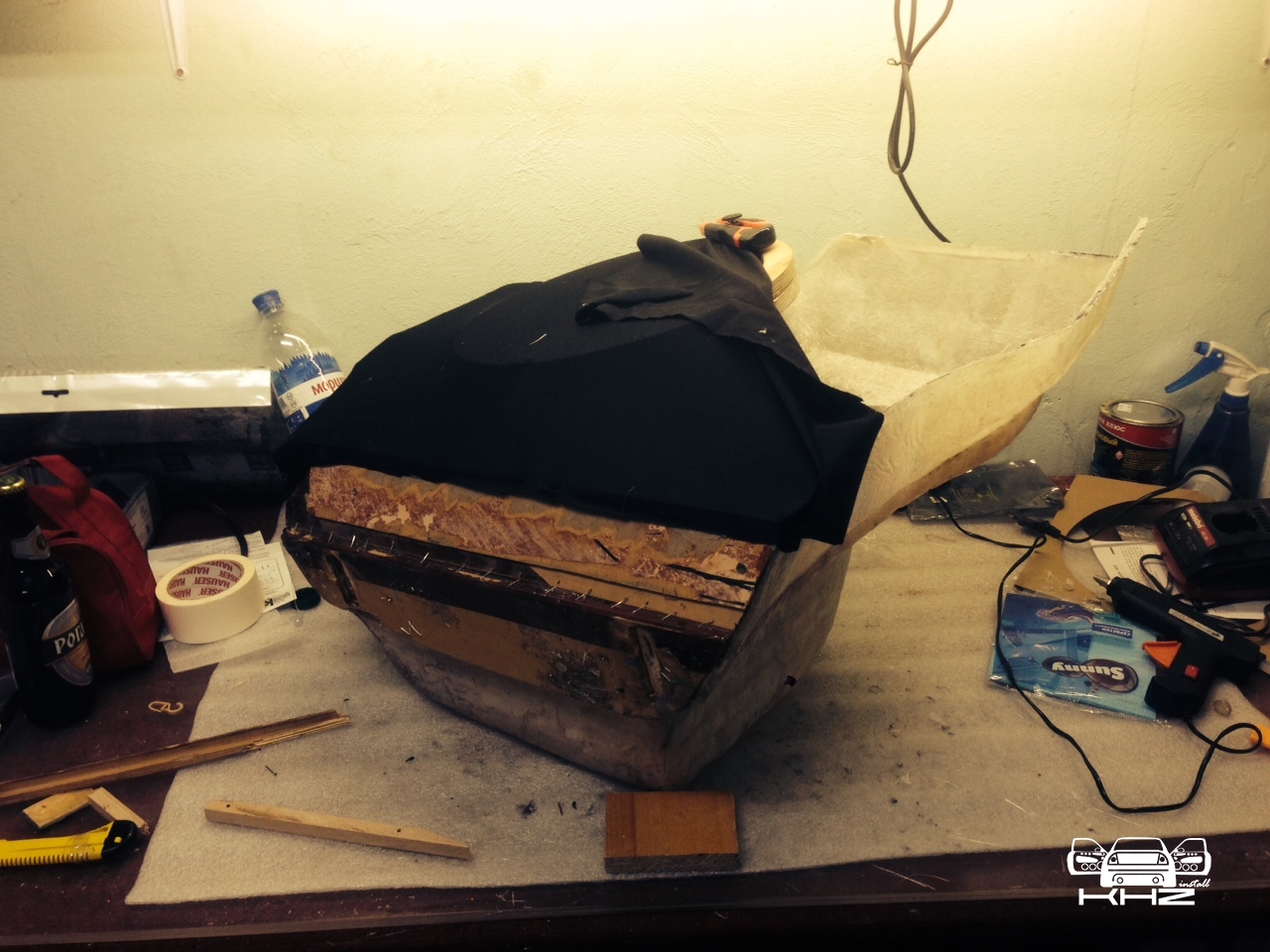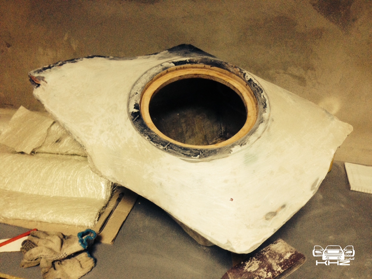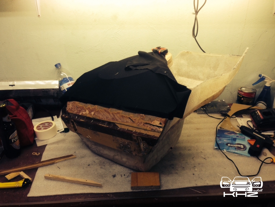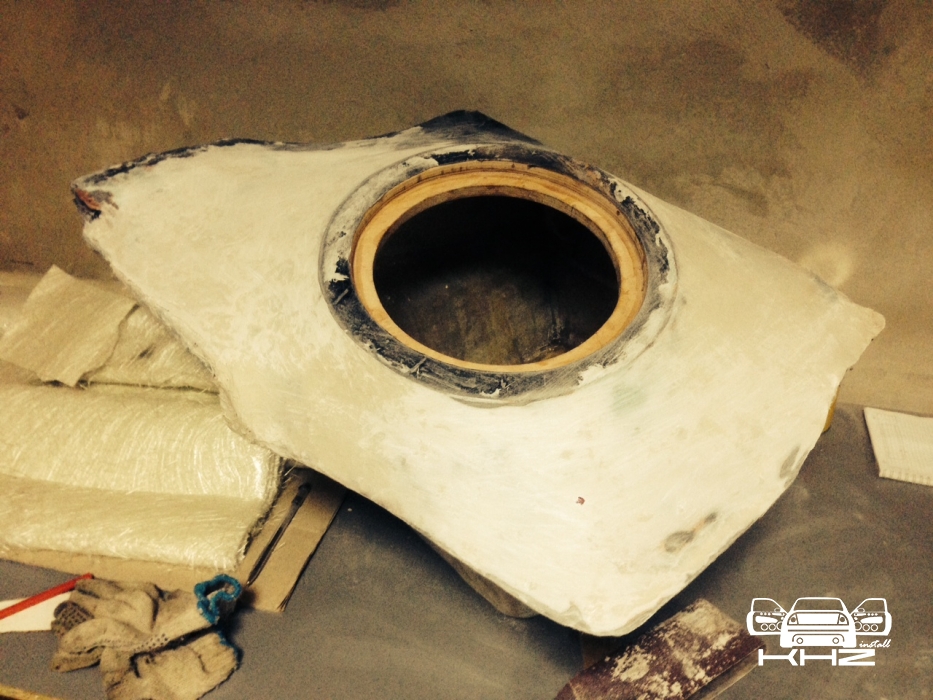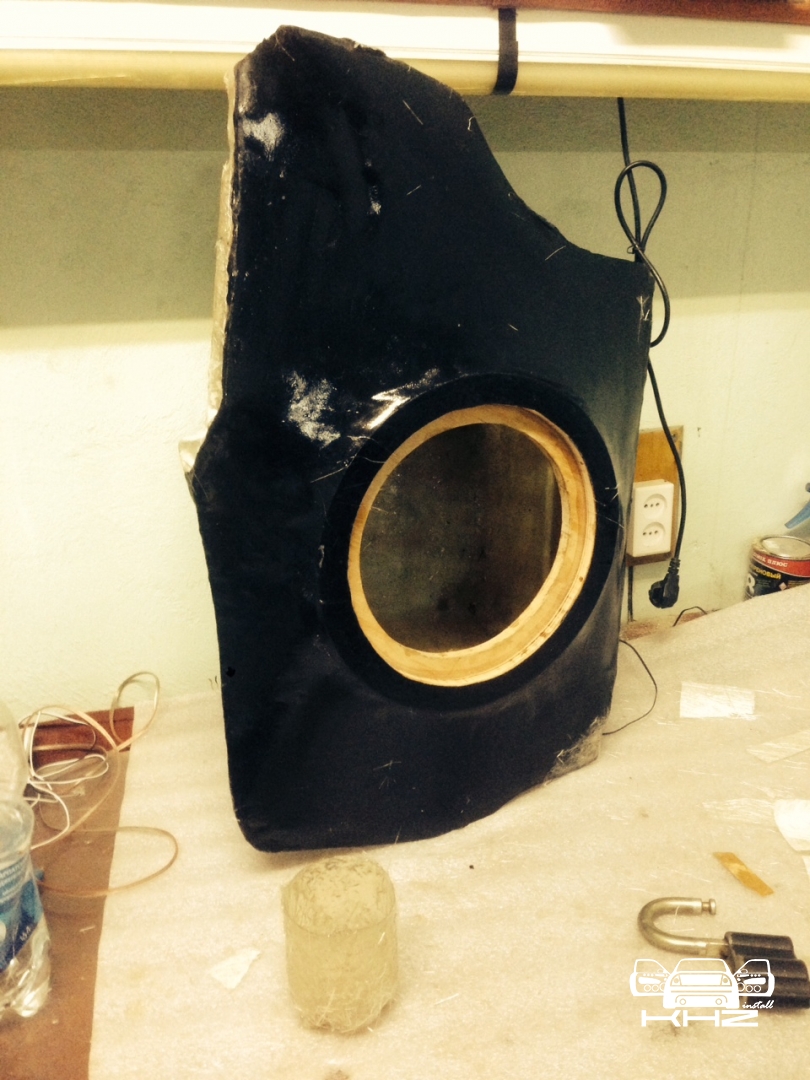 У процесі було вирішено обтягувати сабвуфер алькантарою, тому вигонка стала складнішою, довелося шпаклювати і виганяти його практично як під фарбування.