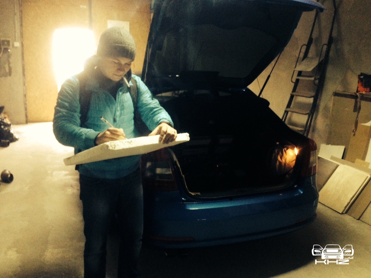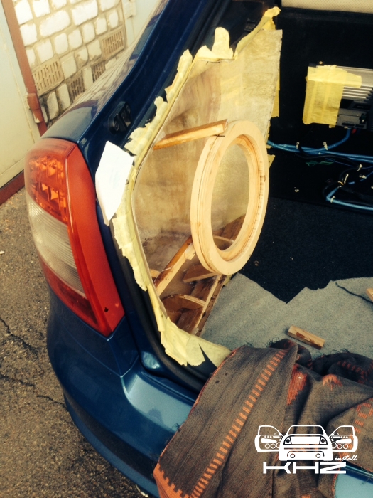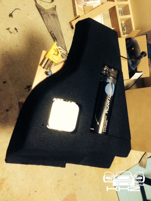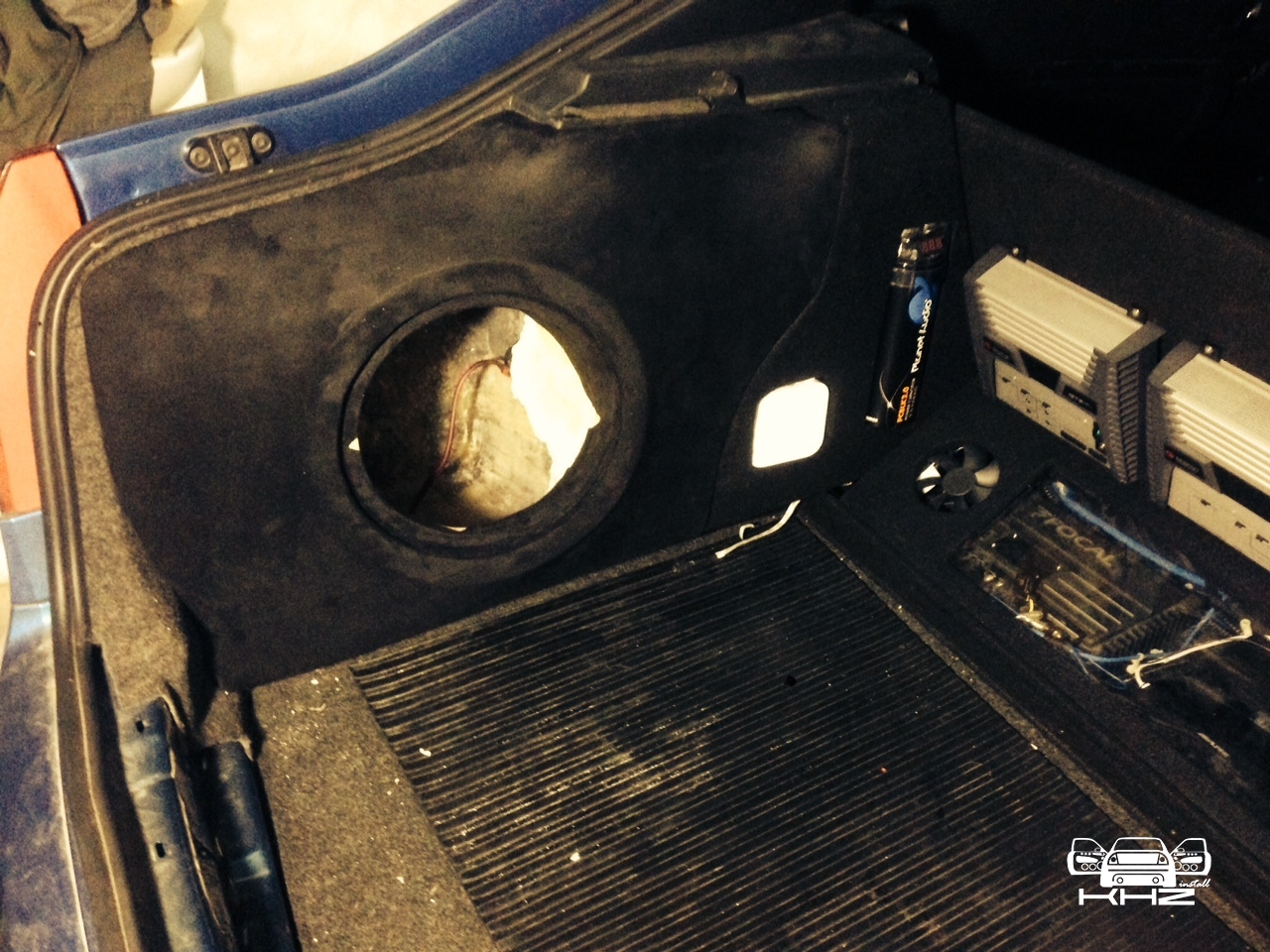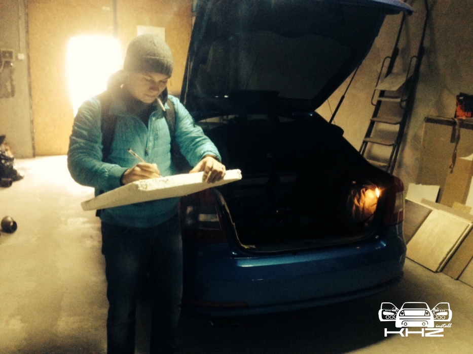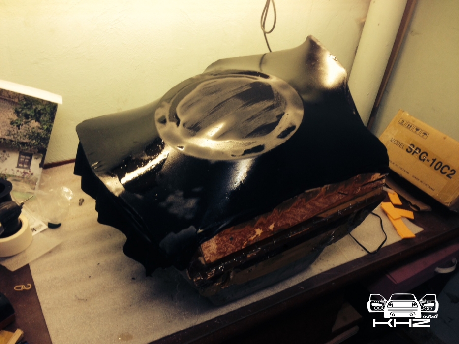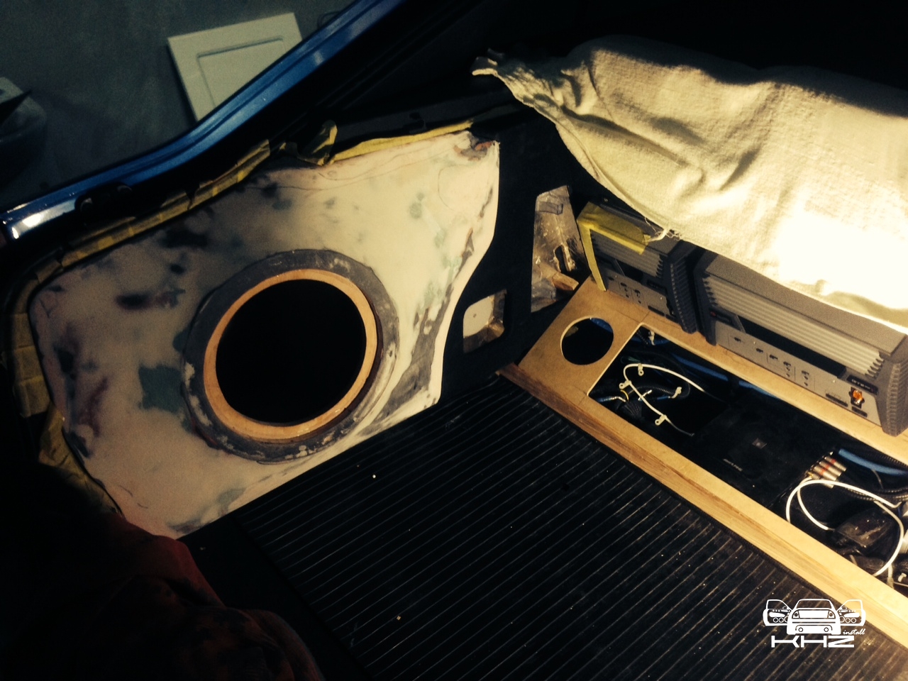 У процесі було вирішено обтягувати сабвуфер алькантарою, тому вигонка стала складнішою, довелося шпаклювати і виганяти його практично як під фарбування.