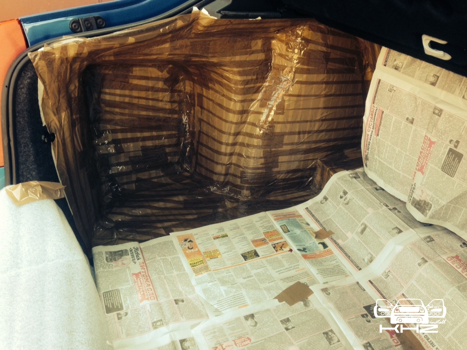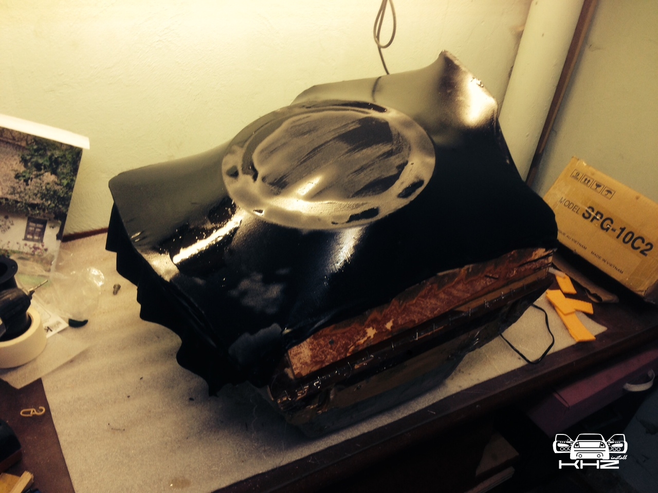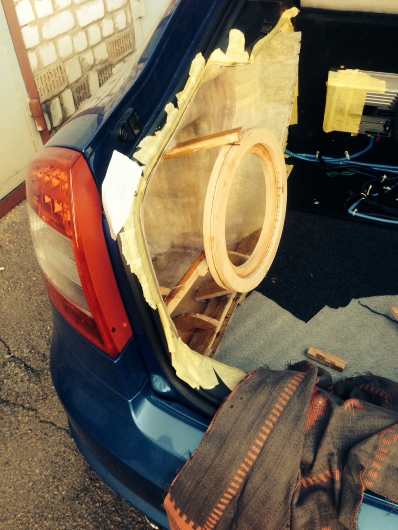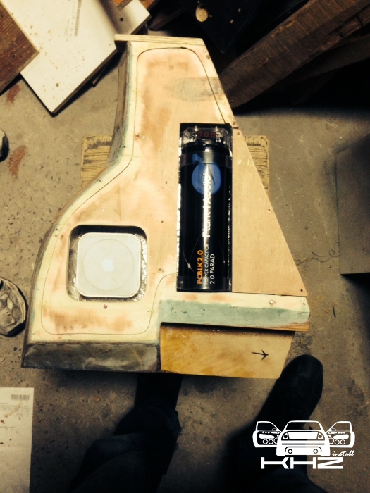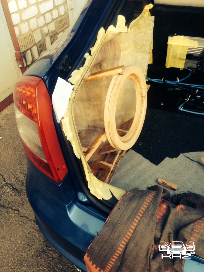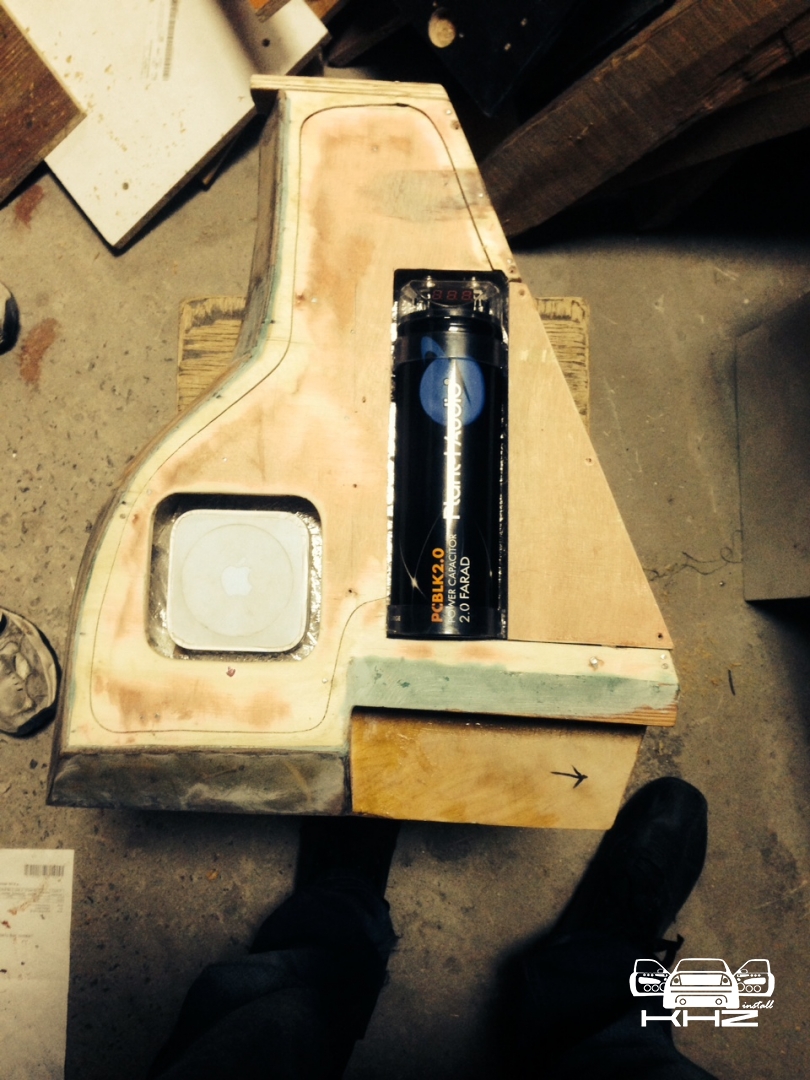 У процесі було вирішено обтягувати сабвуфер алькантарою, тому вигонка стала складнішою, довелося шпаклювати і виганяти його практично як під фарбування.