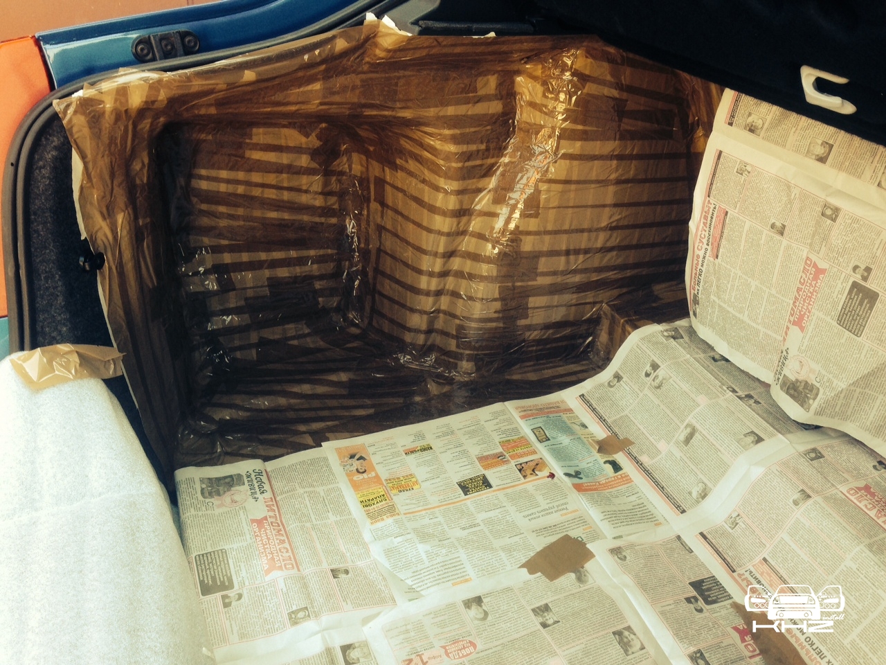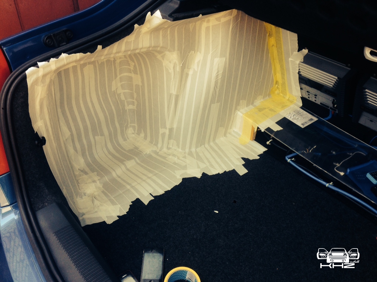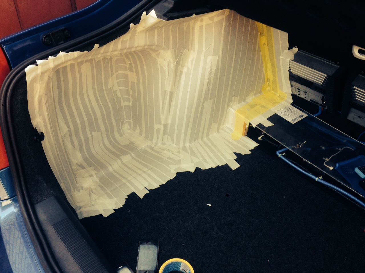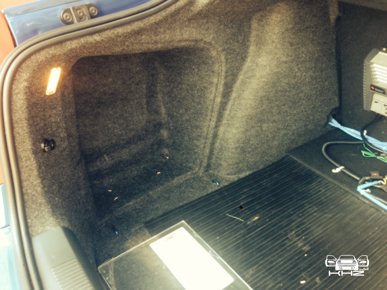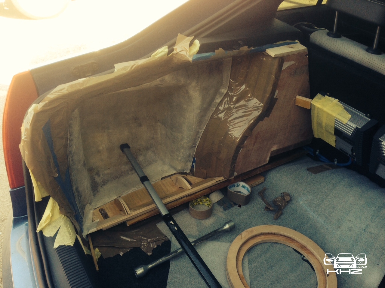 У процесі було вирішено обтягувати сабвуфер алькантарою, тому вигонка стала складнішою, довелося шпаклювати і виганяти його практично як під фарбування.