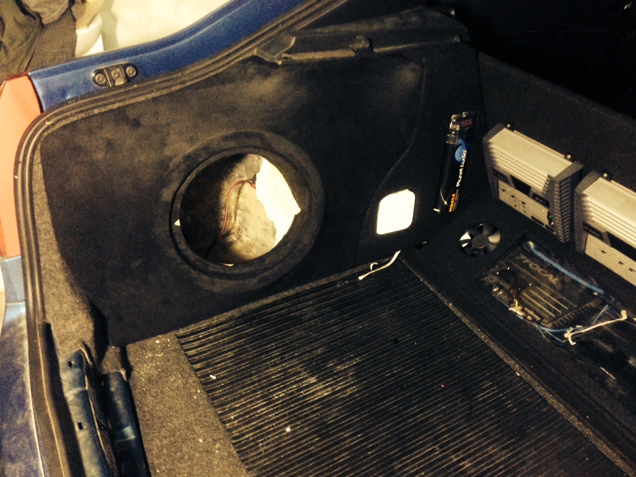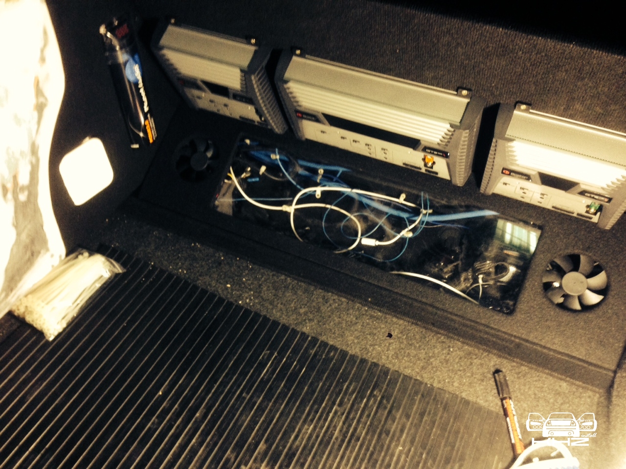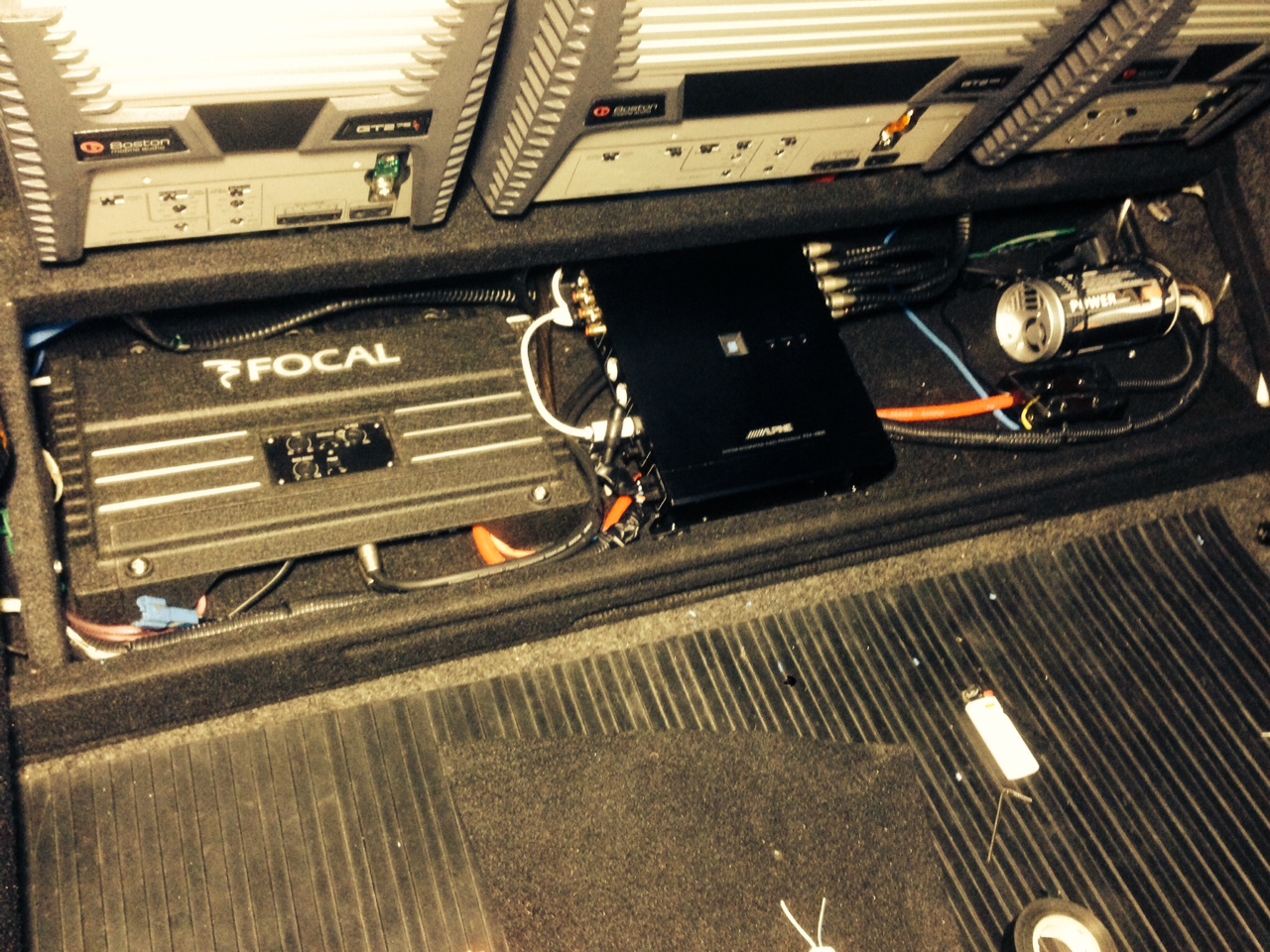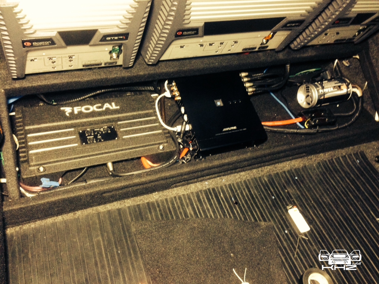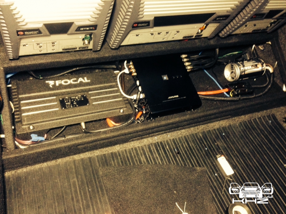 Усю апаратуру перепідключаємо, дроти укладаємо в тюбінги і ховаємо. Саб має котушки 4+4 Ом, комутуємо їх паралельно, щоб отримати опір 2 Ом на виході. Підсилювач Focal Solid 1 хоч і добре качає цей дін, але 8 Ом для нього буде занадто.