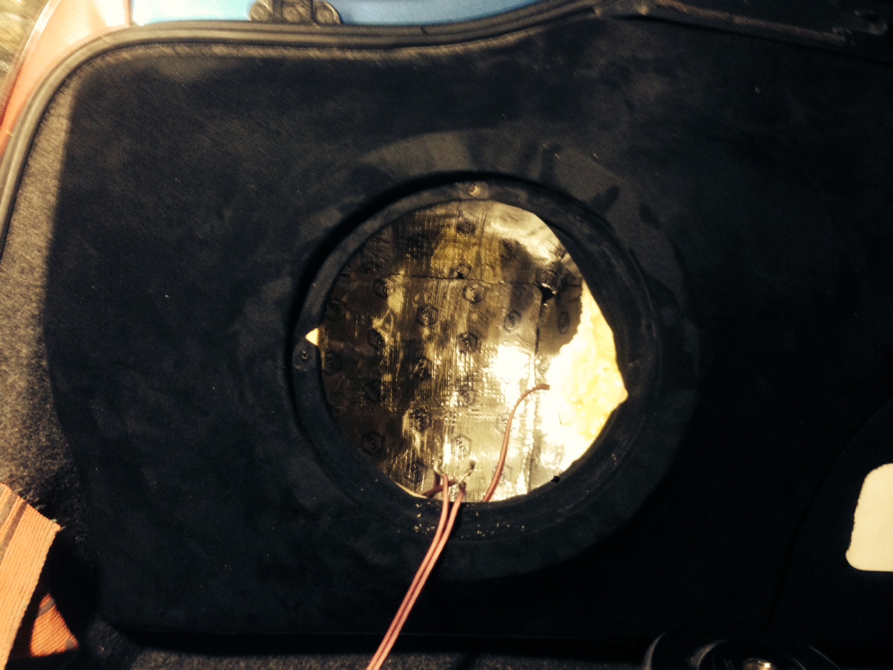 І все таки сабвуфер стелс у чорній алькантарі має дуже ефектний вигляд. Для саба було обрано прекрасний двокатушковий динамік Focal Sub P 25 DB, тож отриманий об'єм довелося прибирати монтажною піною. Ну а далі проклейка зсередини вібропластом.