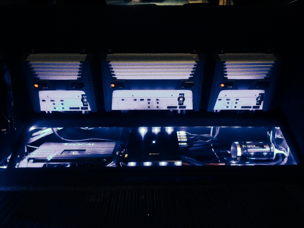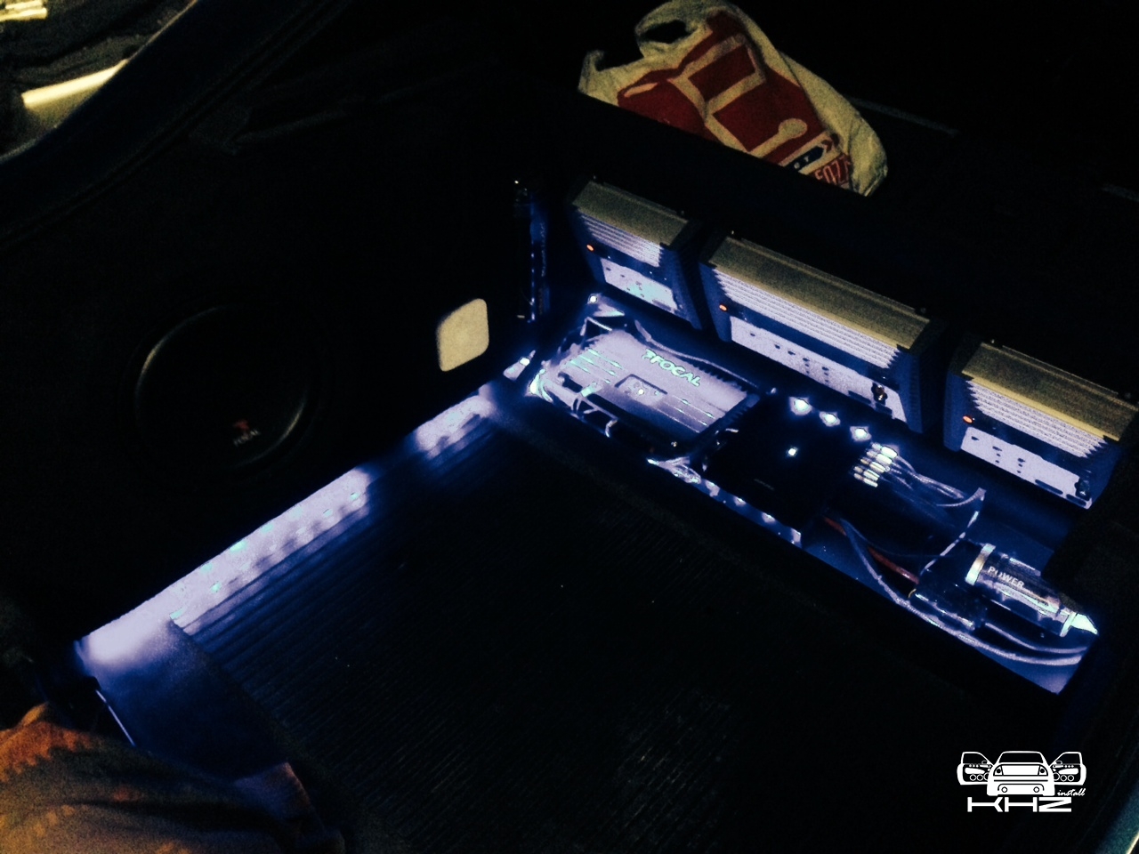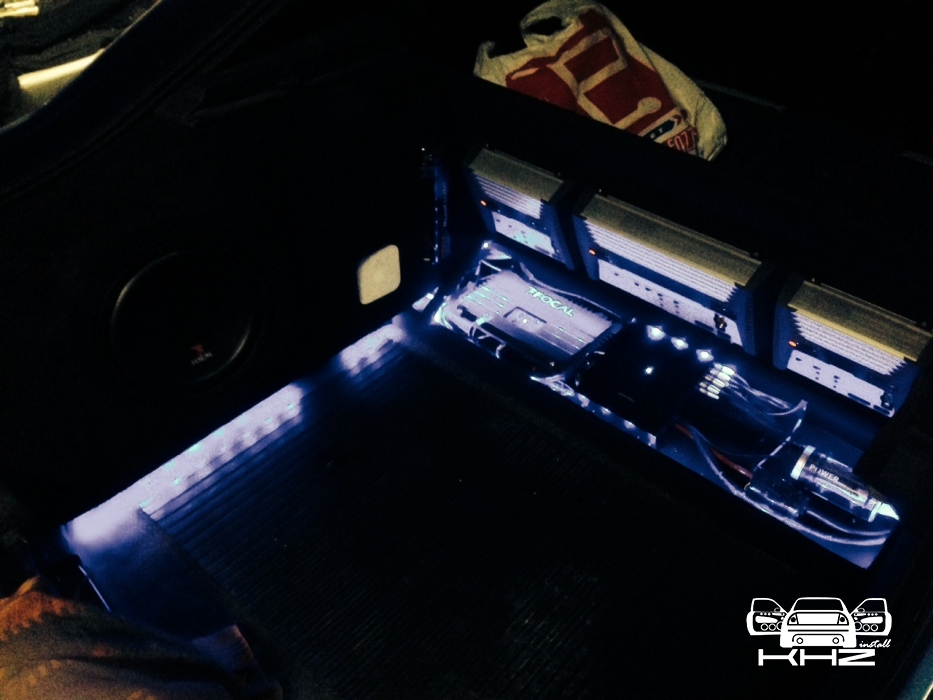 Була виконана інсталяція в автомобіль Skoda Octavia A5 RS. Робота полягала у виготовленні сабвуфера стелс, що переходив у короб під конденсатор і wi-fi роутер, а також короб з підсвічуванням, склом і примусовим охолодженням для укладання туди всієї комутації.