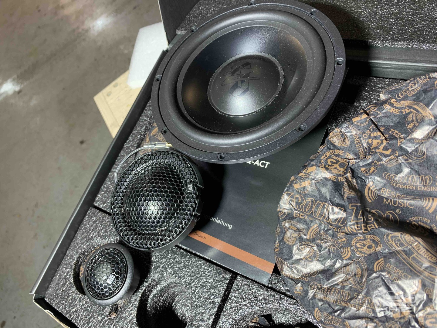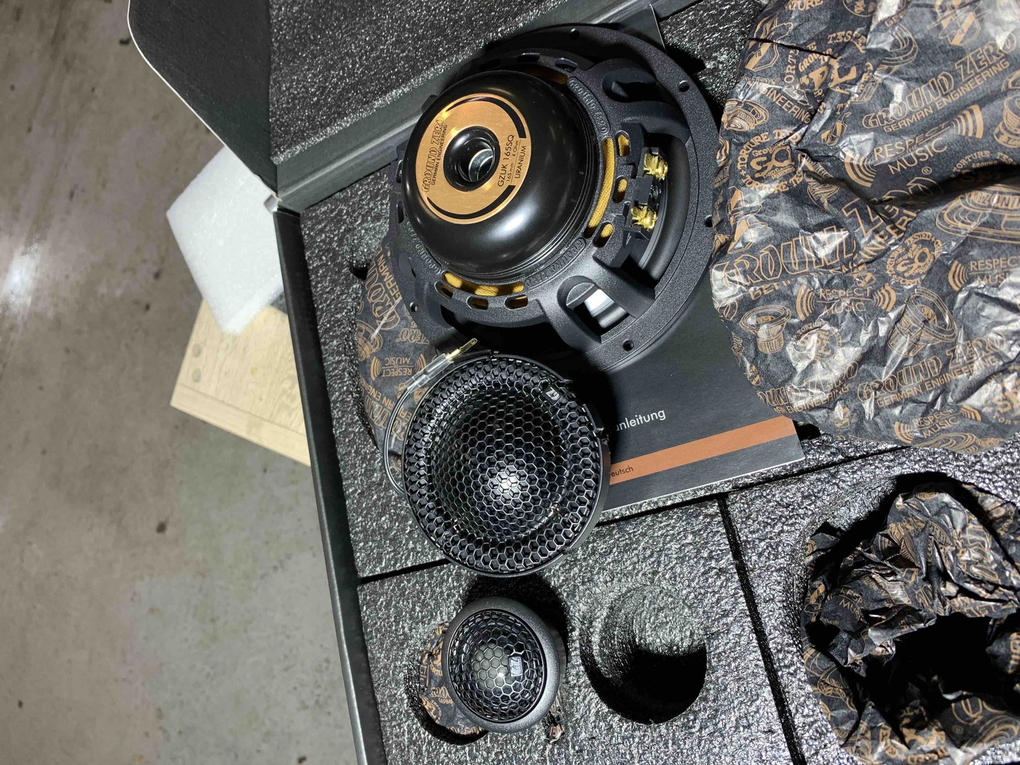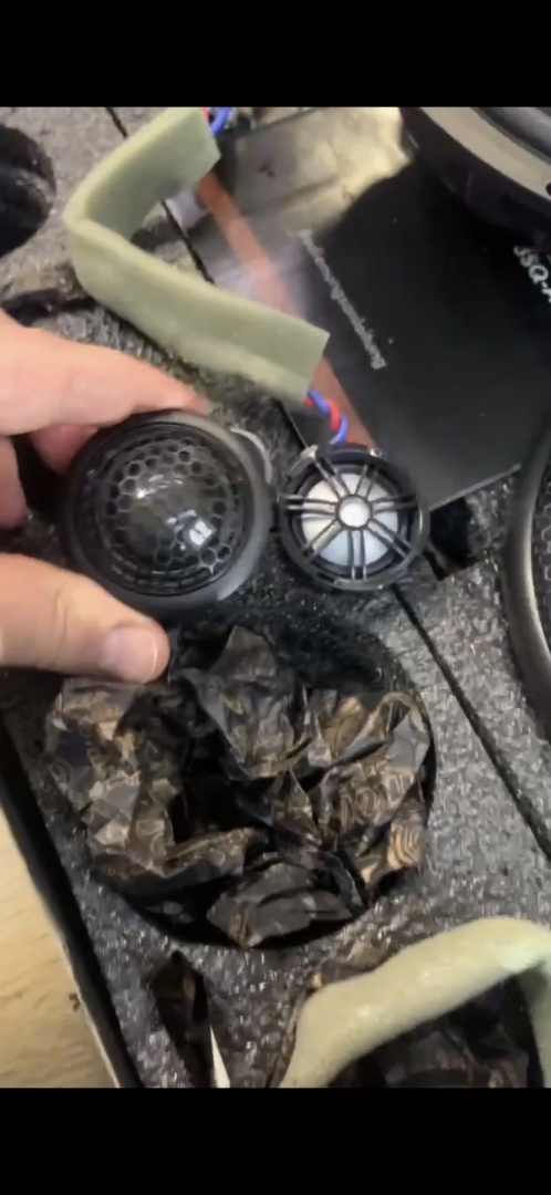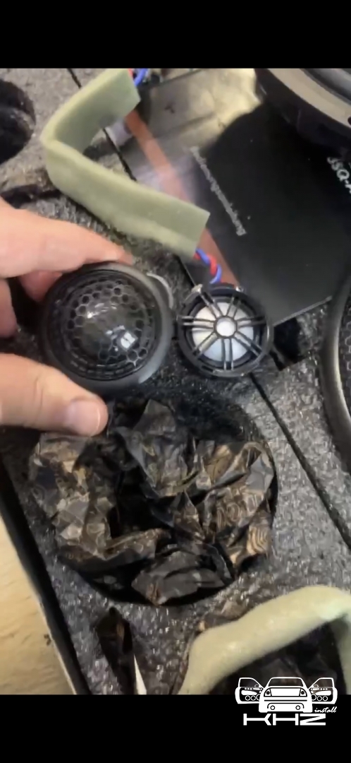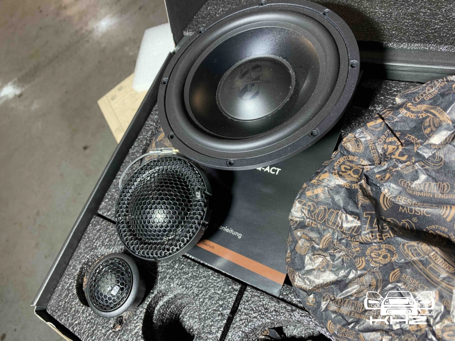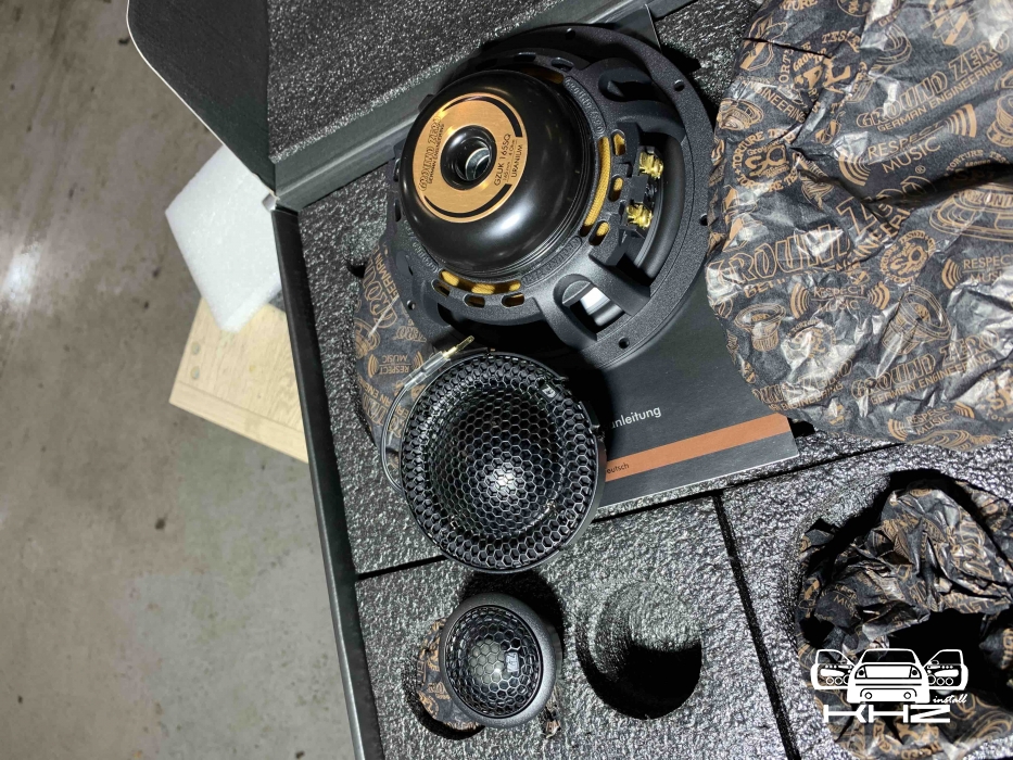 З приводу акустики на фронт, був підібраний дуже крутий комплект акустики, це 3-х смуговий комплект бренду GroundZero Uranium, дана лінійка акустика завжди була у нас в топі, навіть до рестайлінгу дуже круті моделі були, а ці перевершили ще наші очікування. У комплекті йде крутий мідбас з неодимовим мотором, так само дуже детальний твітер і найцікавіше що в комплекті йде сч динамік купольного типу, та він вимогливий до напрямку і установки, але ми проведемо експеримент і він буде в штатному місці - подивимося як він впорається. .От такий чіткий комплект: