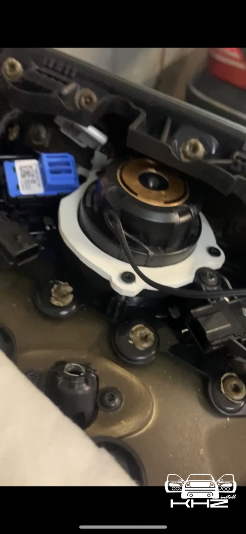 Твітер був встановлений в штатні куточки, на місце заводського, динамік так само ми встановили в штатні місця, для цього ми виготовили проставочні посадкові кріплення з пвх і закріпили динамік а потім цю конструкцію встановили на штатні кріплення. Мідбас ми підключили до нової проводки, і закріпили через проставні кільця в штатні місця, у тозі все стоїть на своїх місцях і результат тут такий: