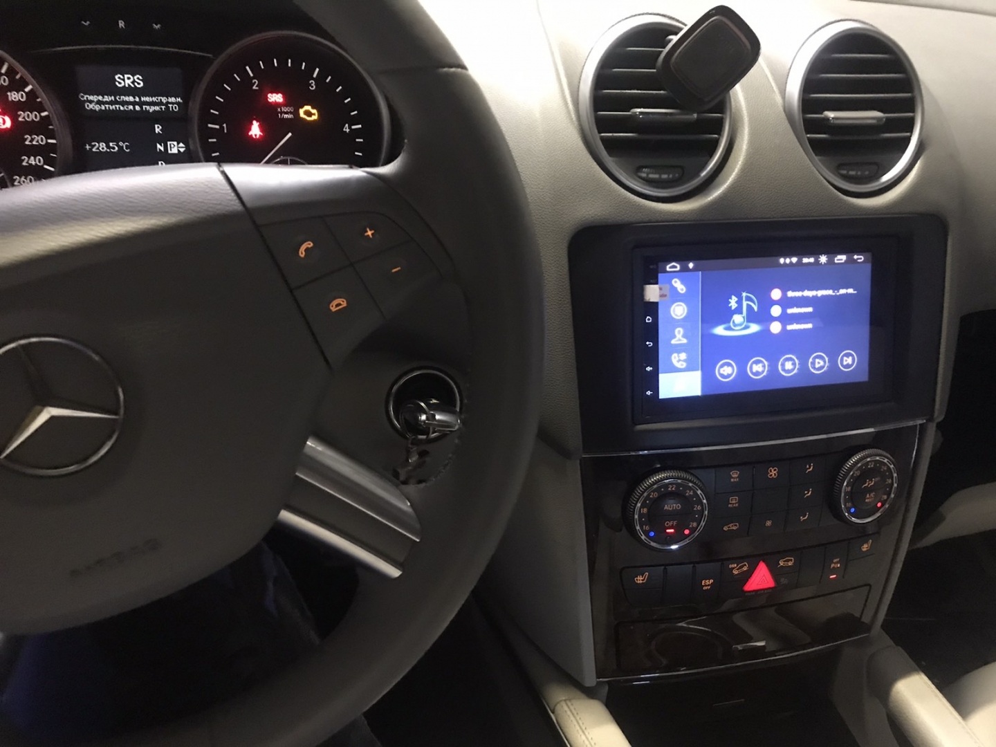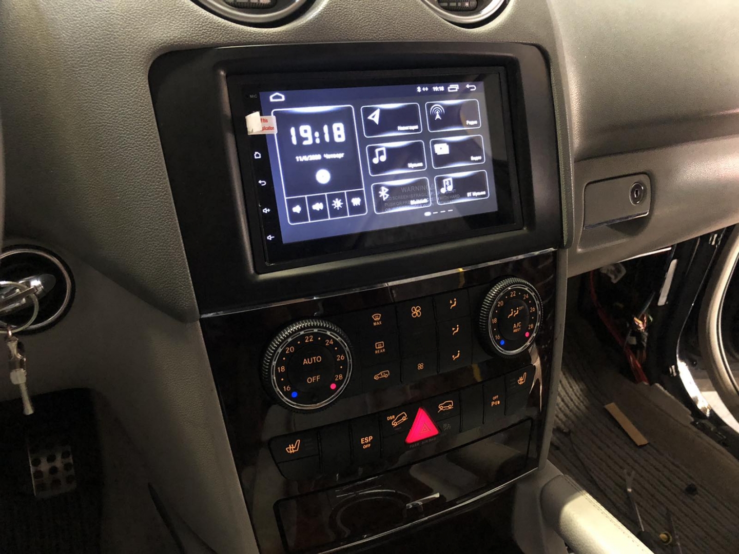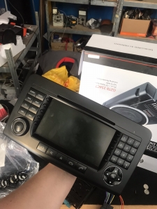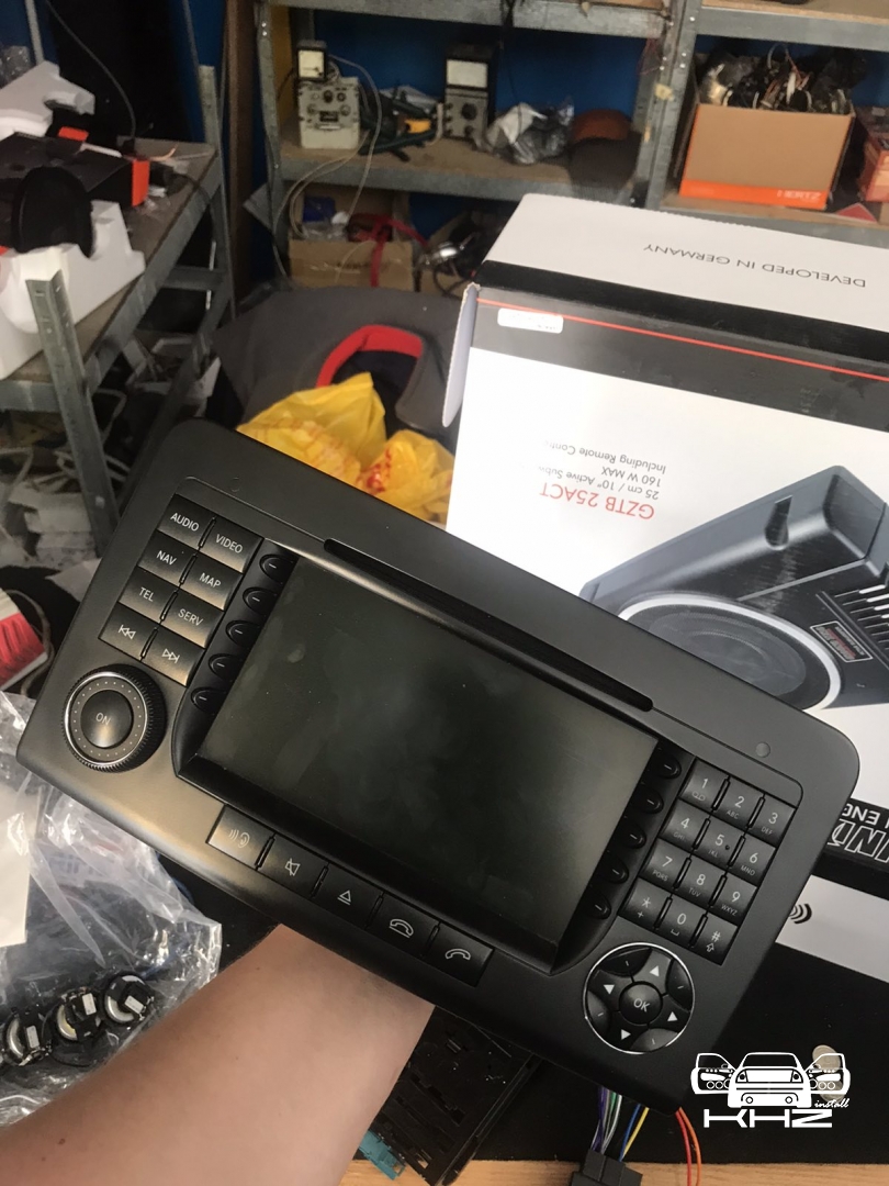 Ми розбираємо основну магнітолу Mercedes ML W164 і починаємо під'єднувати наші адаптери, які допоможуть зберегти штатні функції та гарний прийом радіо, так само ми закріплюємо нову макгнітолу в перехідну рамку, і потім усю цю конструкцію будемо кріпити до автомобіля, так само розводимо GPS антену для прийому навігатора. Магнітолу встановили, під'єднали всю проводку, провели налаштування і результат такий: