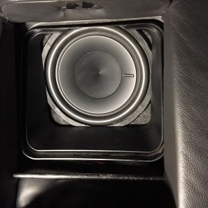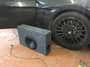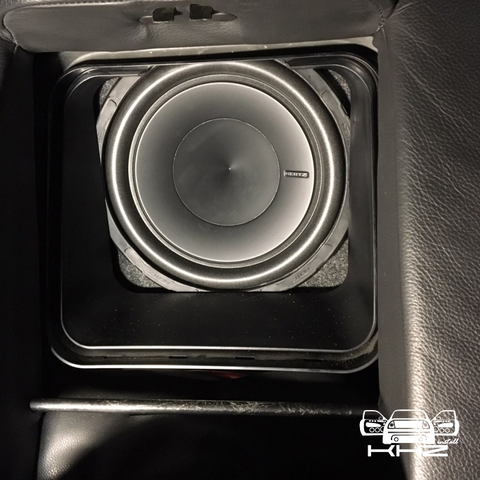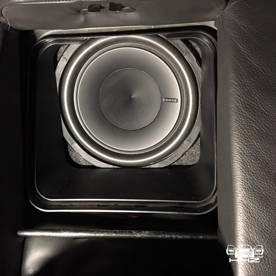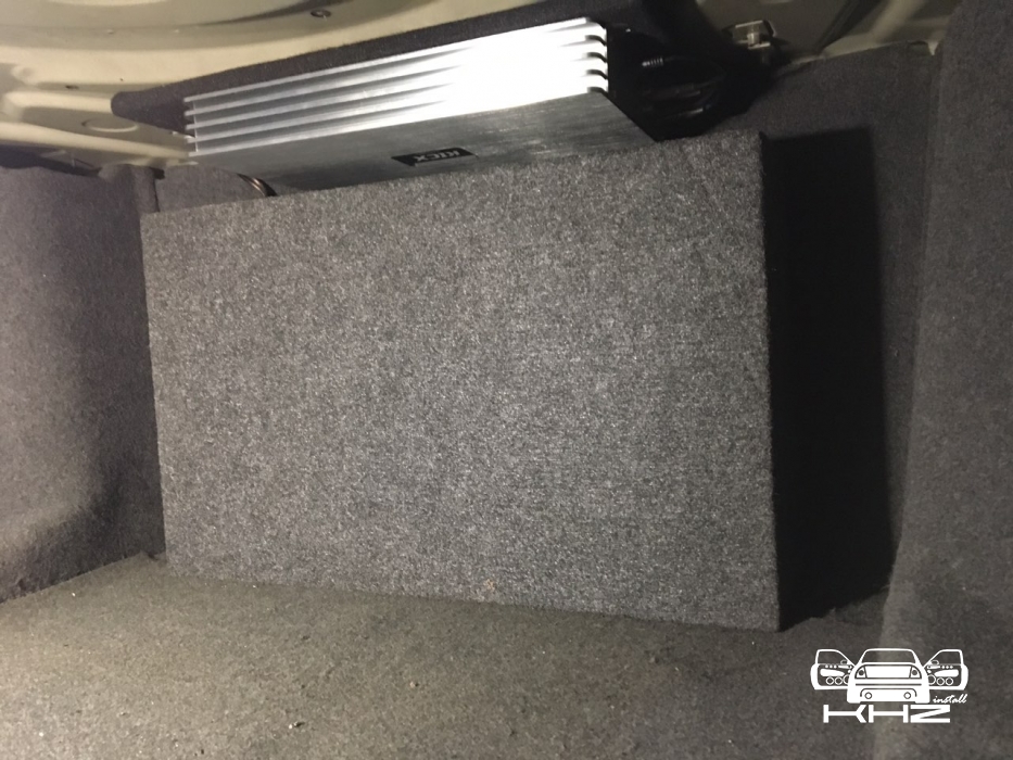 Ну і найважче було правильно підібрати сабвуфер за бюджетом і виготовити короб, так щоб сабвуфер дивився чітко в підлокітник, для максимального ККД його роботи. Для цього ми допрацьовували отвір підлокітника і обшивку багажника, короб ми зробили максимально плоским, щоб не вкрасти корисне місце в багажнику, так само ми прорахували короб із мінімальним об'ємом і фазоінверторним оформленням, з приводу вибору сабвуфера, багато роздумів не було, ним став Hertz Energy 25 см, із двома котушками, щоб його під'єднати до мінімального опору, для максимального результату і віддачі.