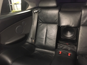 Як бачите, все вийшло акуратно і компактно, в салоні все в штатних місцях, дана система має розім'ятися протягом тижня і дати максимальний результат за якістю звуку, плюс звук із заводської магнітоли не дуже високого рівня, з цього будемо чекати заміни головного пристрою в BMW 6 E63. А так всі елементи системи почали звучати інакше, плюс з'явилася потужна сабова ланка, яка доповнила провал за низькими частотами.