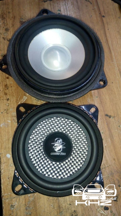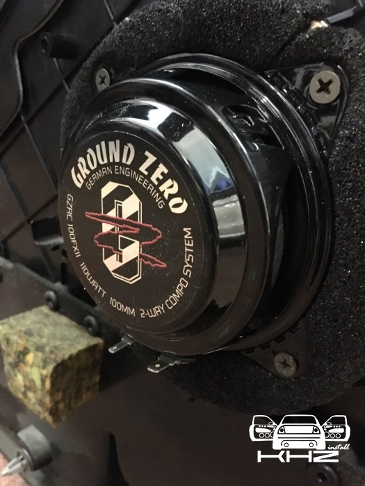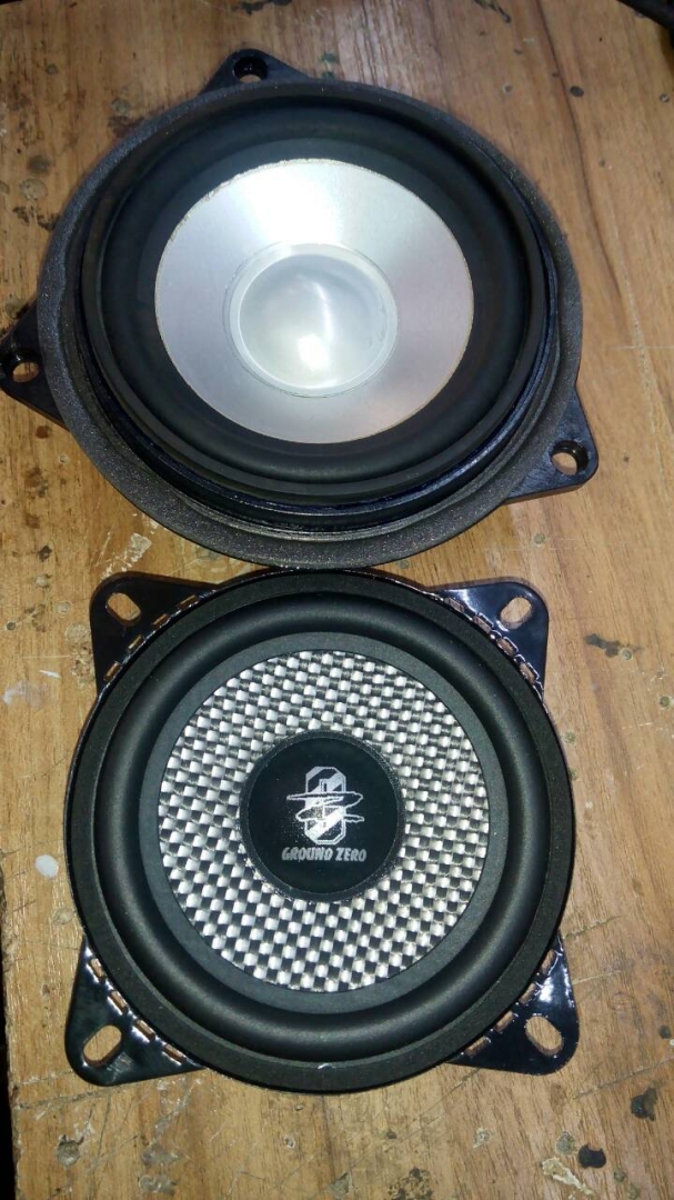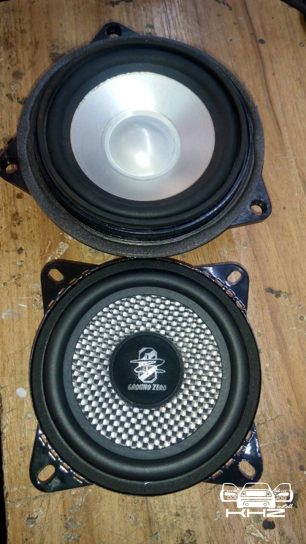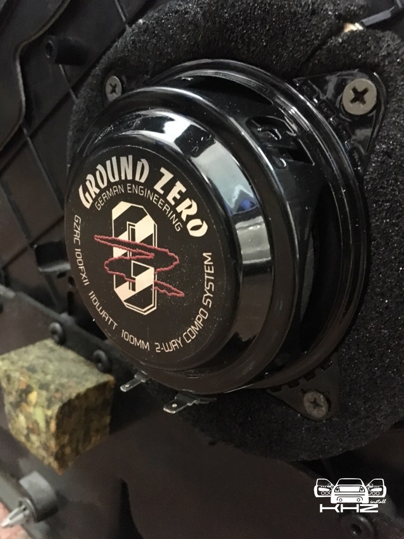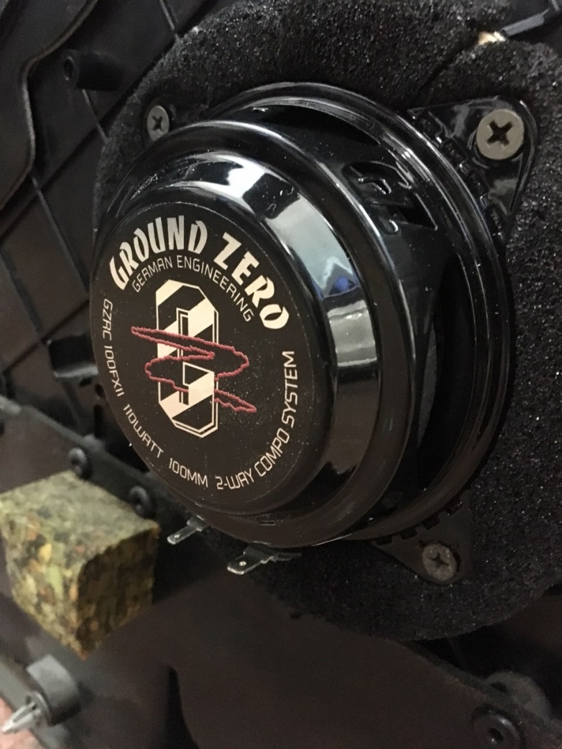 Це 10-ти см компоненти високого класу, з хорошим запасом потужності GZRC 100FXII, для їхньої установки потрібно виготовити непрості проставочні кільця, і закріпити їх у посадочне місце, далі закріпити динаміки, в даній bmw 6 стояла гарна система Logic7, і її переплюнути не просто, але в комплексі ми зможемо! порівняли динаміки і закріпили.