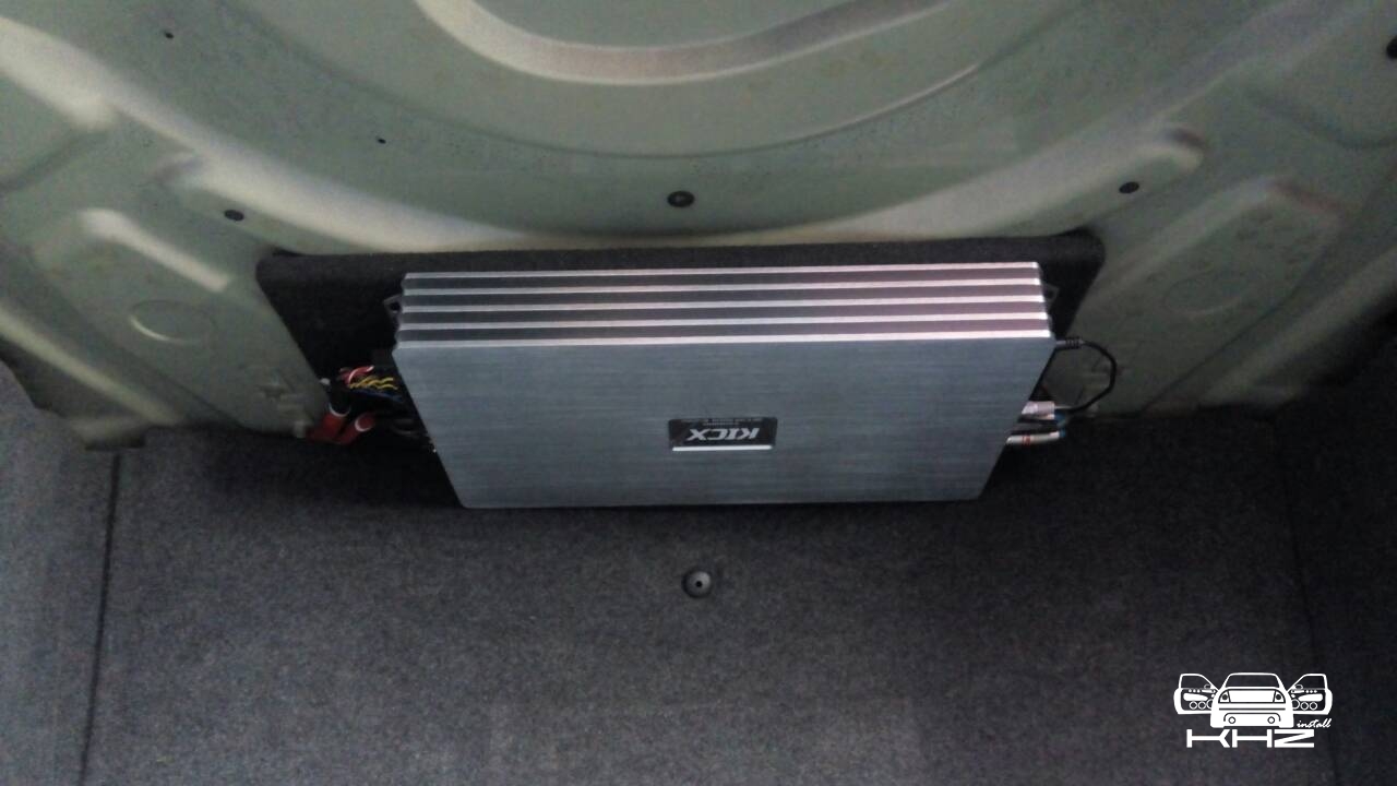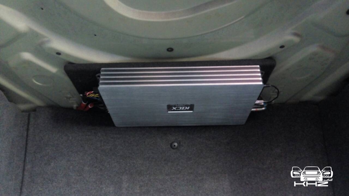 І так акустика в BMW 6 E63 встановлена і переходимо до встановлення підсилювача звуку, його ми підібрали 5-ти канальним, щоб максимально більше елементів посилити, і такий, щоб був максимально потужний сабовий канал, для цього завдання ідеально підійшов Kicx QS 5.300, бо в нього 4 потужні канали А/В класу та сабовий в 300Вт - D класу. Його ми встановили в багажнику під полицею і під'єднали до акумулятора силовими проводами з запобіжником. Так само інсталяції підсилювача, щоб під'єднати його до штатної магнітоли, нам знадобився хороший перетворювач сигналу на 4-ри канали, так само під час під'єднання нового підсилювача звуку, деякі динаміки, задні і центральний канал ми залишили працювати від штатного підсилювача звуку.