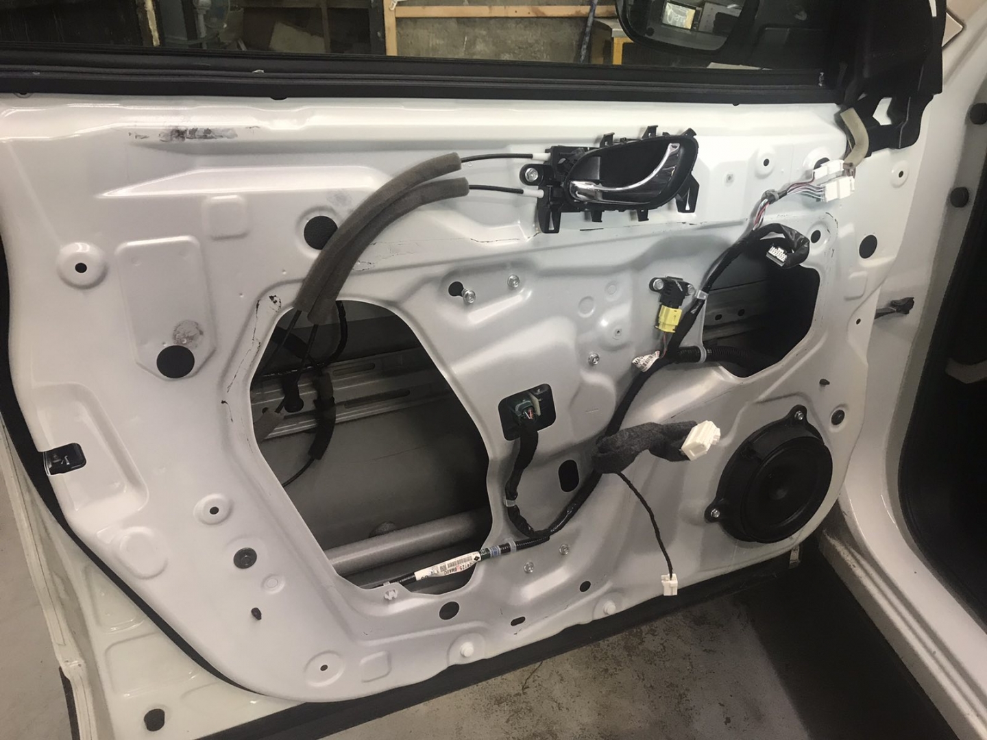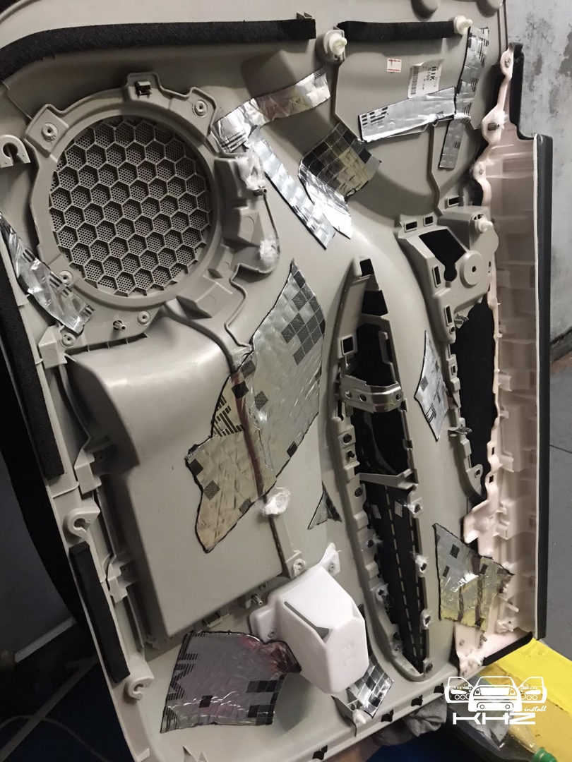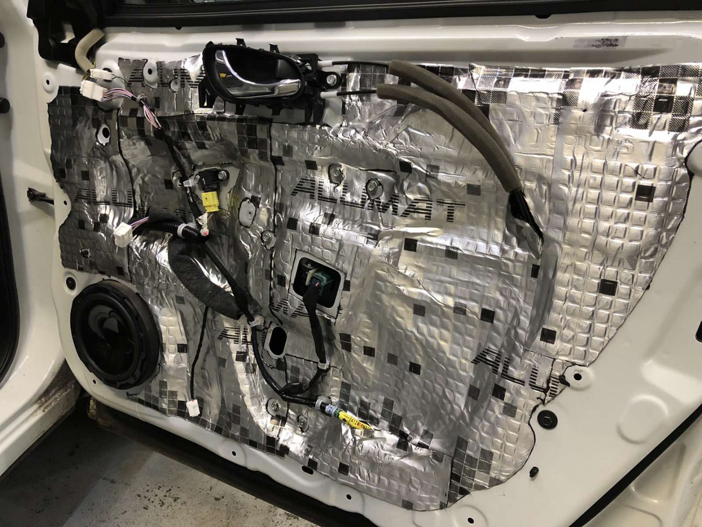 ШВІ робимо як завжди в 4 шари, перший шар віброізоляція всередину, на неї наносимо Тепло-шумоізолятор. Далі оформляємо фільонку дверей, там де стоїть динамік, закочуємо всі анатомічні отвори, тим самим зміцнюючи каркас дверей. І найостанніший етап - це підготовка пластикової карти, ми її обклеюємо шматками віброізоляції для того, щоб зробити її не такою кволою, а потім повністю затягуємо м'яким матеріалом, щоб прибрати всі скрипи і тертя пластику з металевими частинами дверцят.
