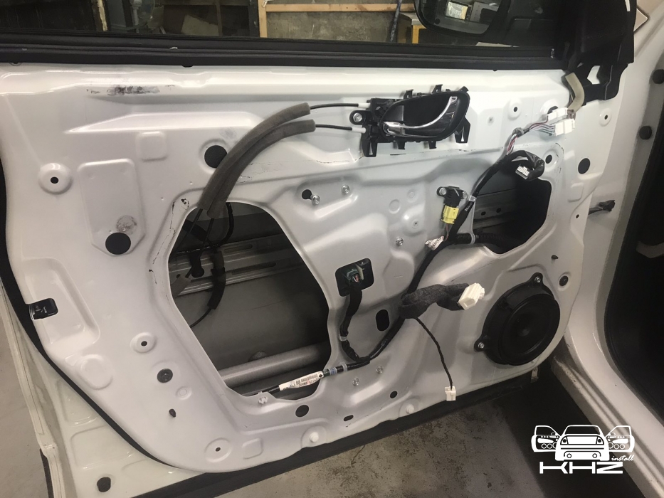 Поїхали, як завжди при установці нової і хорошої акустики в автомобіль, тим більше яка буде працювати з підсилювачем, обов'язково її правильно оформити за допомогою ШВІ дверей, та й це ще додає комфорту в автомобілі і ще прибере вібрації від роботи мідбасів.