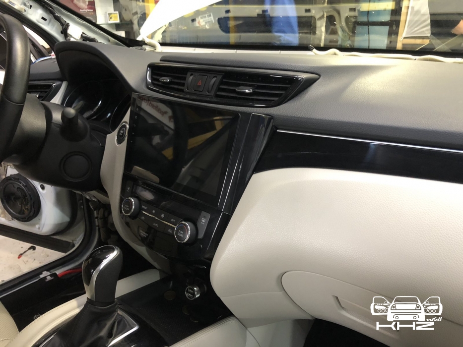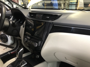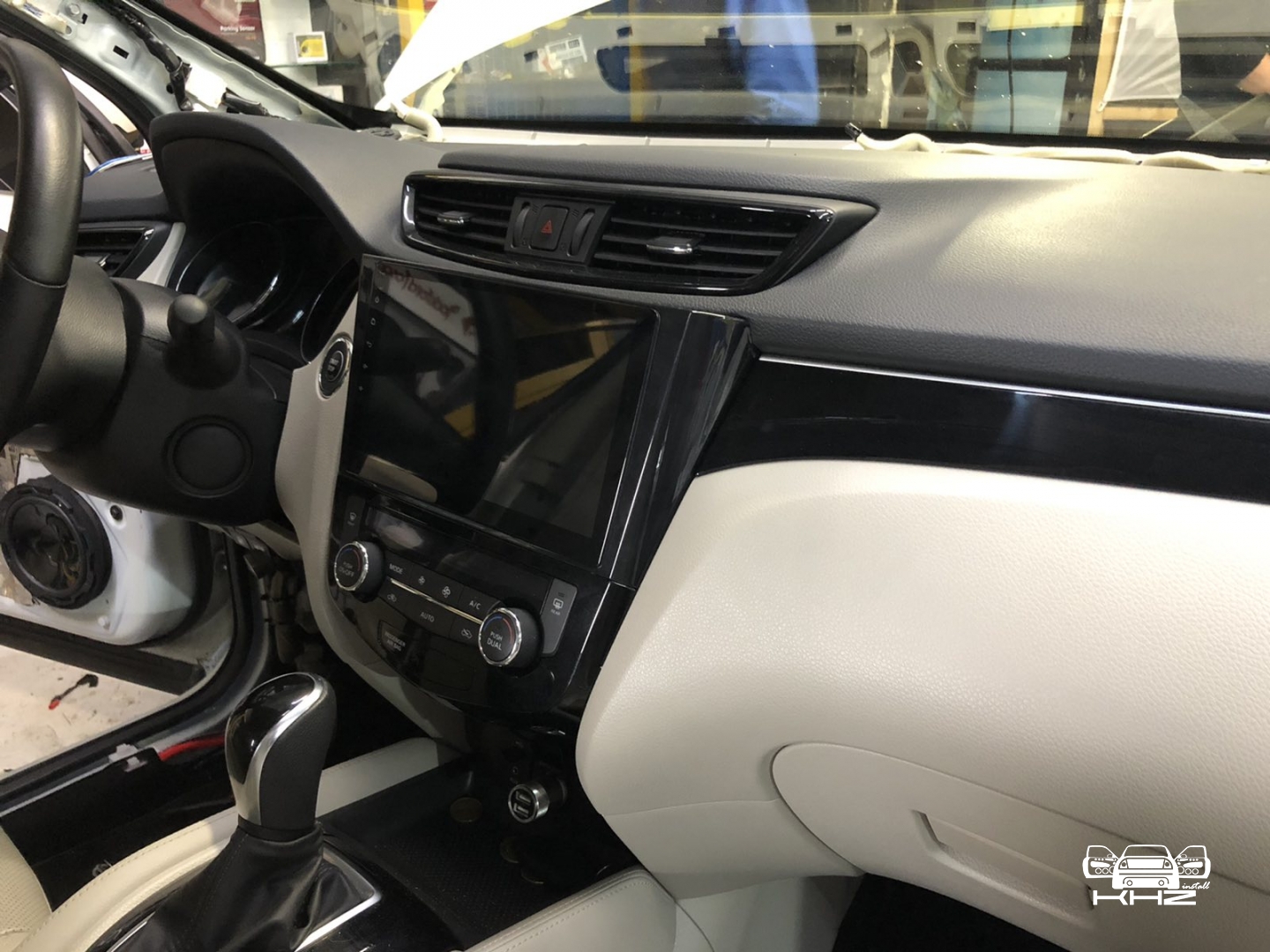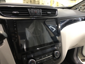 Рухаємося далі і наступний елемент це заміна головного пристрою Nissan Rogue, як і всі заводські магнітоли, тут вона на вигляд може бути і непогано, але якість звуку, яку вона передає - сумна, тому ми замінимо і її, плюс є гарний варіант з максимально великим дисплеєм і підтримкою всіх штатних функцій. Ми демонтували заводську, розвели по стійках GPS-антени і 3G 4G антени, під'єднали керівні кабелі, акуратно розклали проводку і закріпили нову магнітолу в штатне місце, стала як рідна, виглядає Агонь і підтримує всі камери, систему кругового огляду тощо.