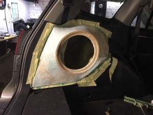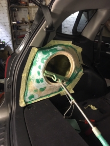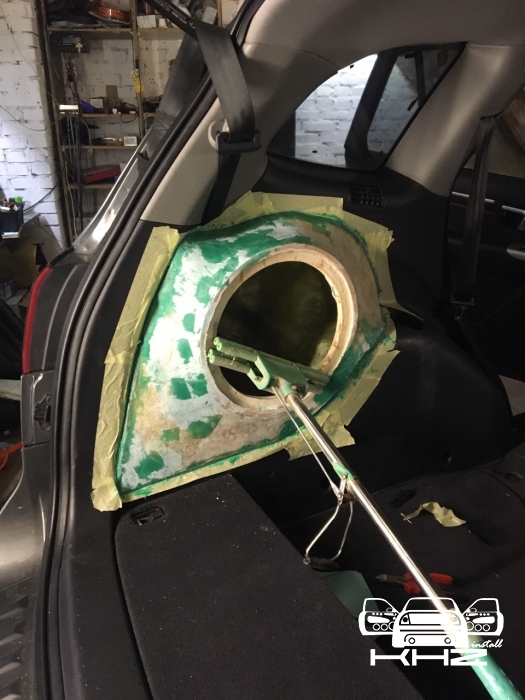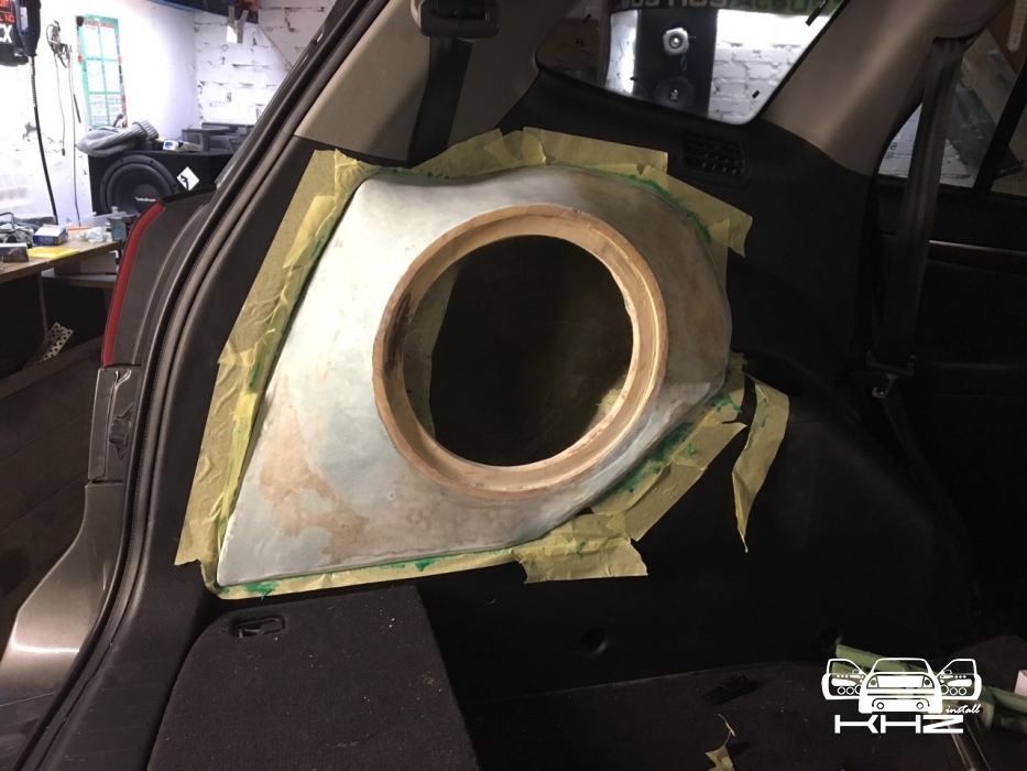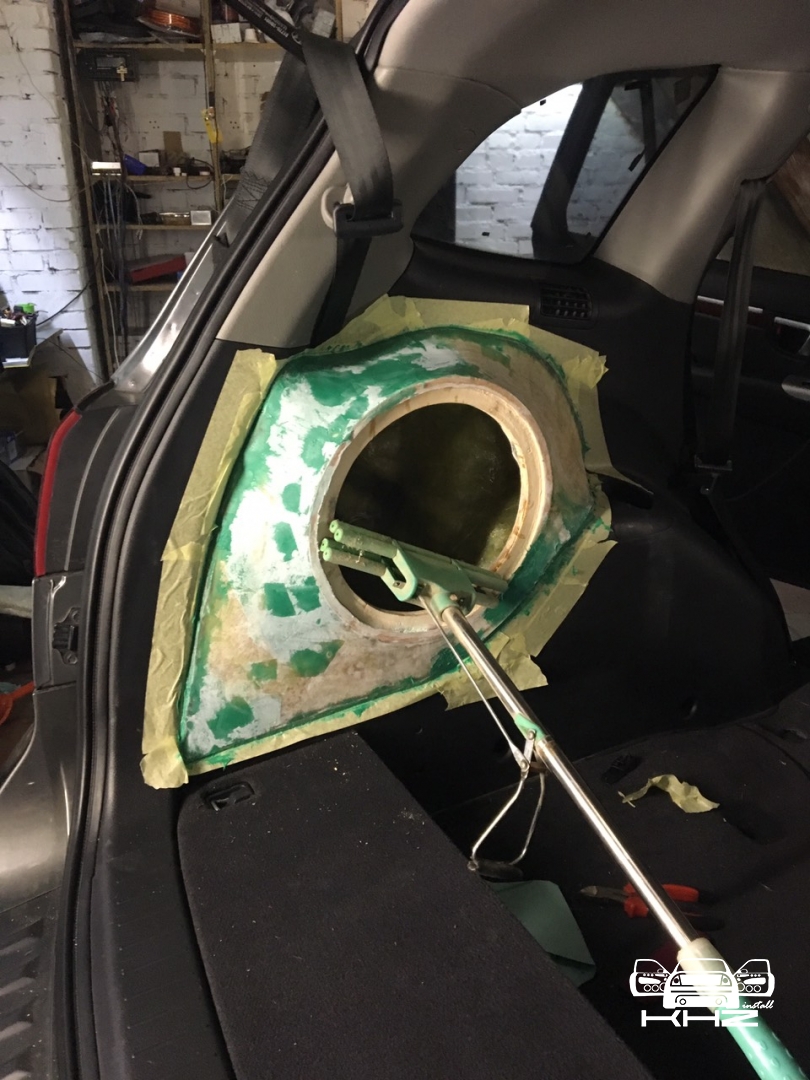 Нанесли смолу і скломат, зняли матрицю, зробили потовщення стінок і обрізали по межах, щоб сформувати лицьову стінку і встановити посадкове кільце під сабвуфер.