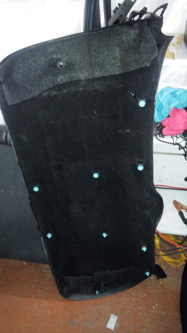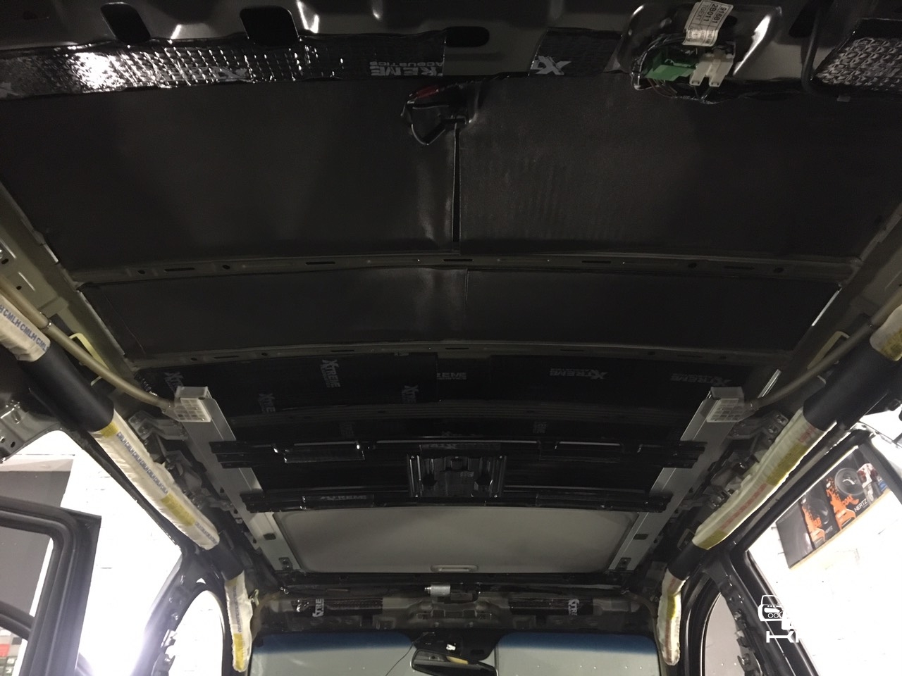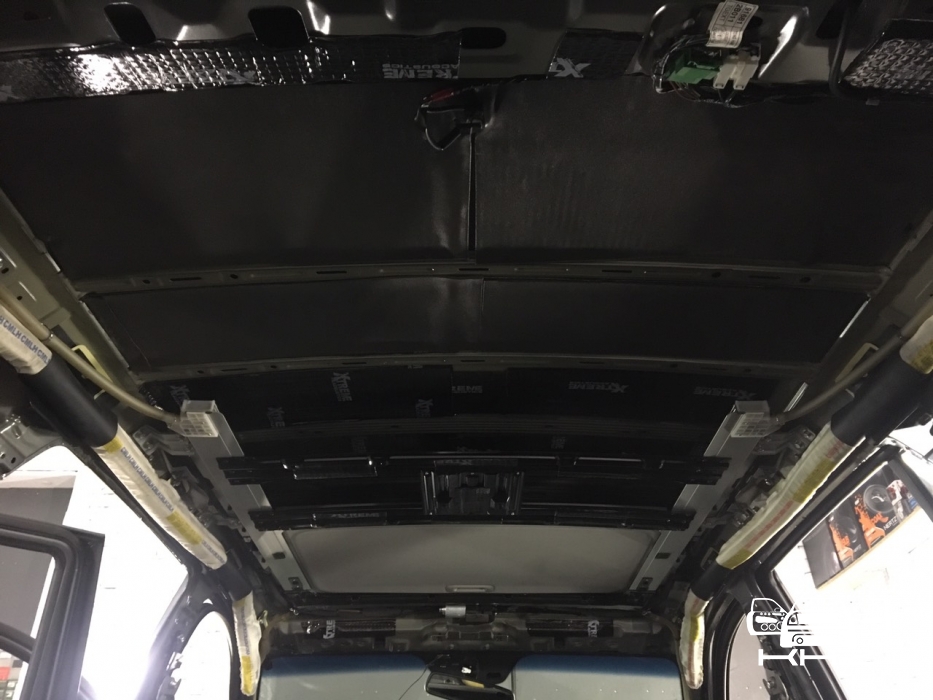 З арками закінчили, тепер кілька фото зі стелі, це так само одна з найбільш звукопровідних частин кузова, стелю в Hyundai SantaFe обклеїли так само полегшеними матеріалами, щоб вона не провисла під вагою.