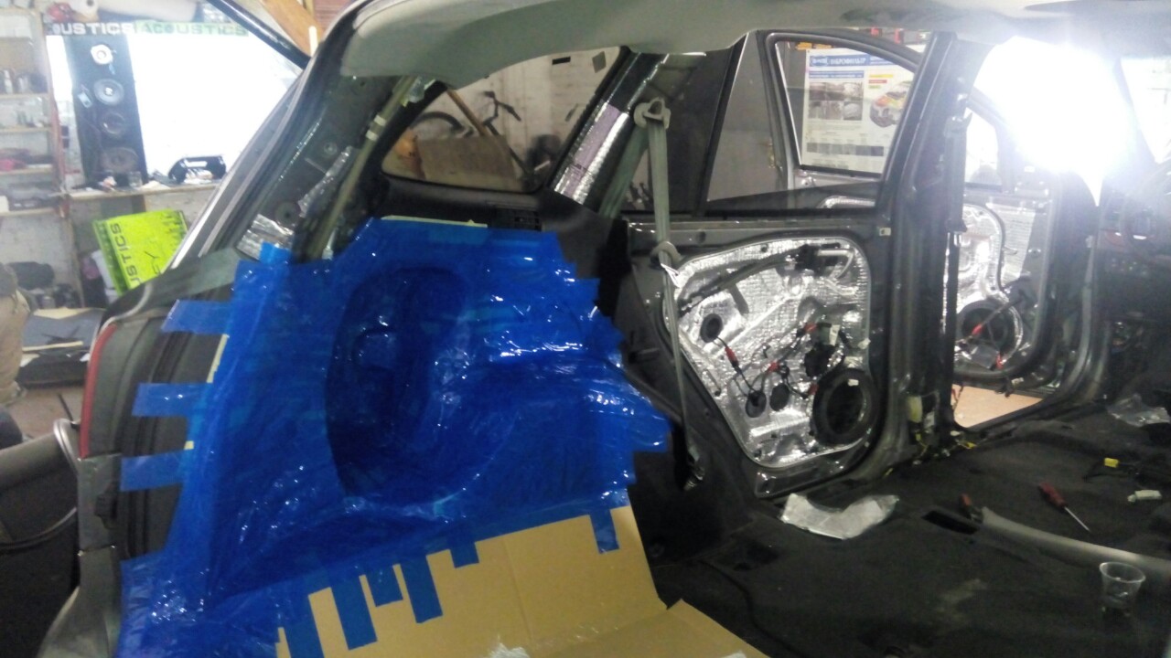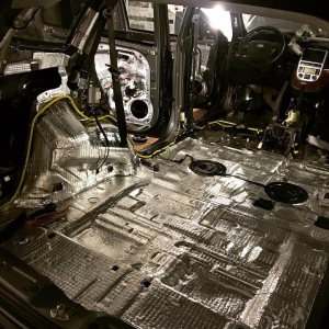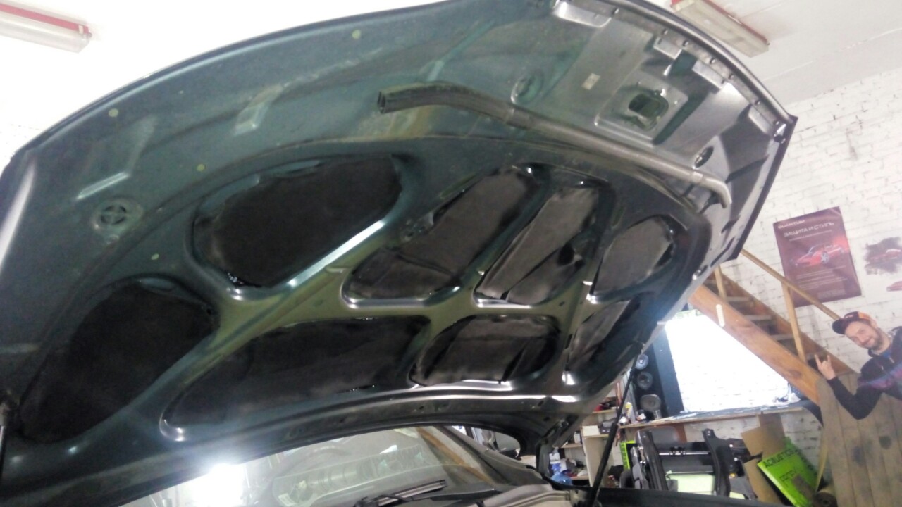 Почнемо з вібро-шумоізоляції, ми робили всі елементи, а саме: - двері - ляду - підлогу - багажник з боковинами - дах - капот - арки і весь салонний пластик.