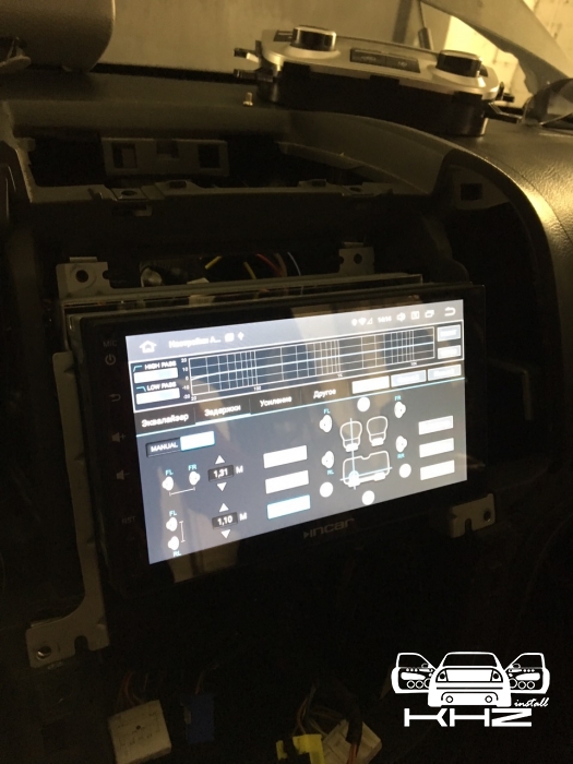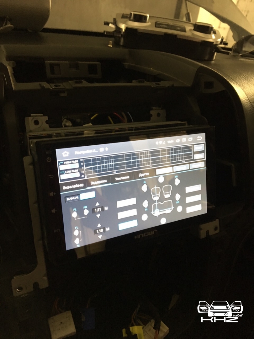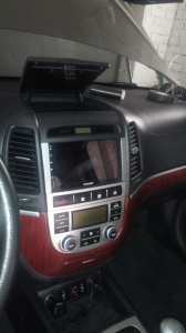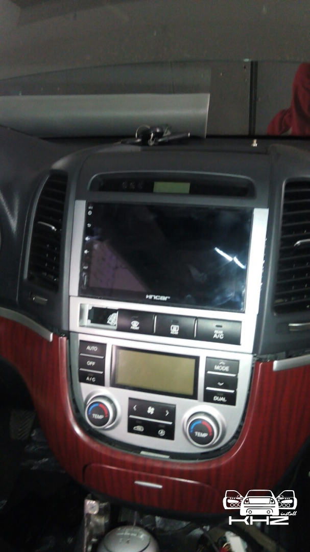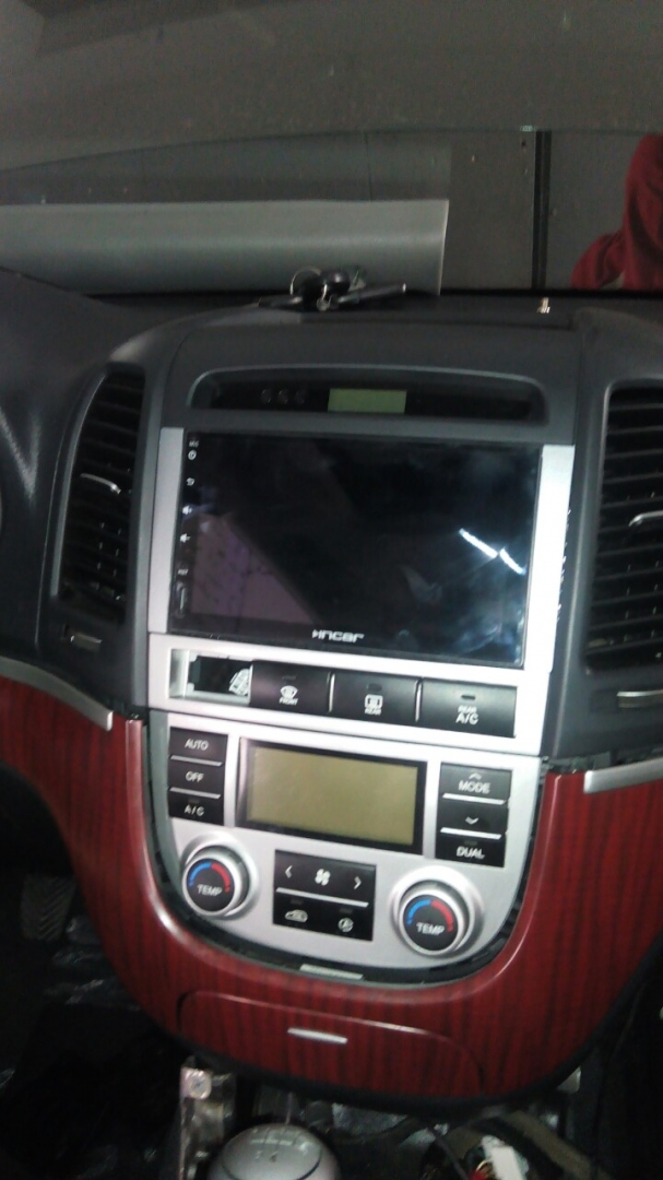 Підсилювач звуку для акустики в Hyundai SantaFe був закріплений на металеву раму, але на якій був штатний підсилювач, моноблок закріпився до підлоги через килим за допомогою дерев'яних рамок. Далі мова піде про заміну магнітоли в Хюндай Санта Фе. Заводська магнітола дуже псувала звук, а завдання стояло його поліпшити, однозначно вона була до заміни, у нас був 100% варіант у відповідному бюджеті, хоч магнітола і китайська, але вона зроблена дуже якісно і не поступається брендовим магнітолам, які в 2 рази дорожче! Це процесорна магнітола з повним спектром налаштувань і затримок INCAR AHR 9280 DSP, так як ми ставимо її в не перший раз, ми знаємо що вона не підведе. Єдиний нюанс в установці, це те що перехідна рамка для установки, що не фантастично підходить до магнітол не брендовим, з цього ми її допрацювали, і інсталювали так: