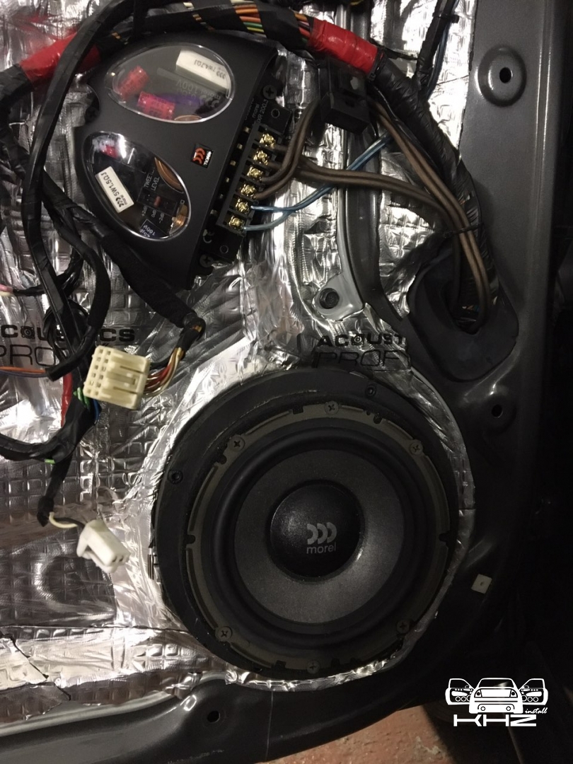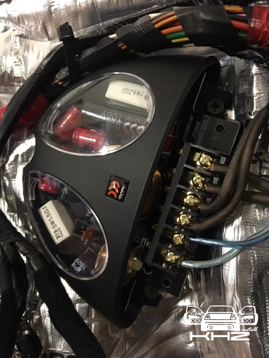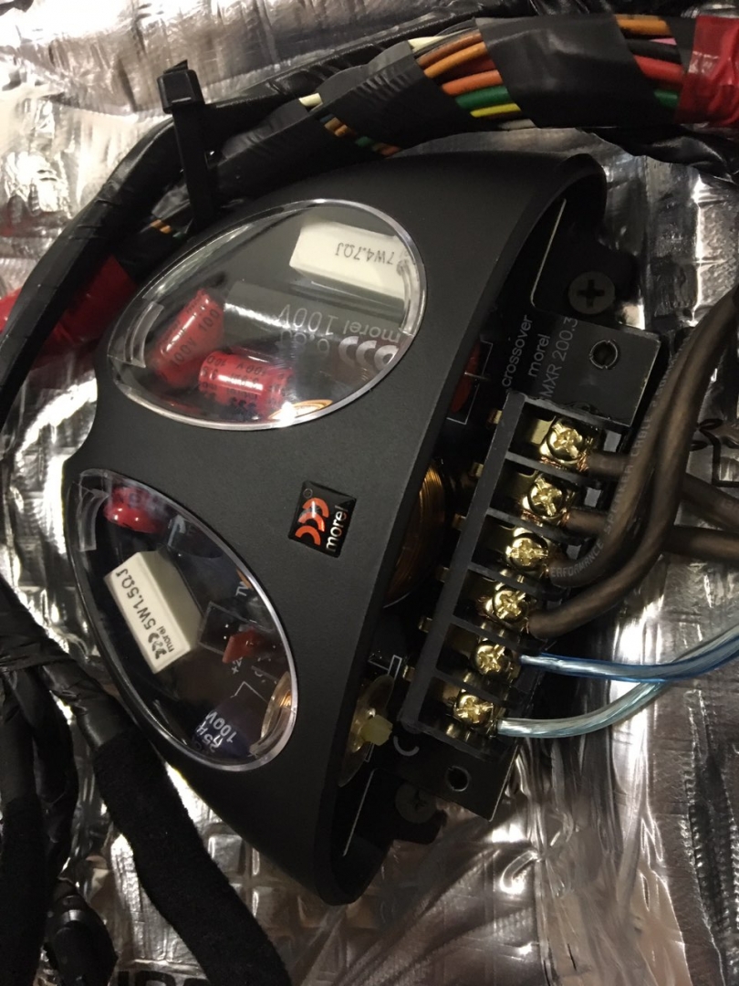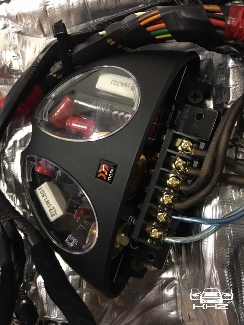 Вся проводка якісна і з високим перетином, щоб уникнути втрати потужності, а тепер про акустику, один із лідерів звуку - це, звісно, Morel, акустика Morel дуже добре зарекомендувала себе на ринку України, як за якістю, так і за звуковими характеристиками. На фронт була підібрана одна з топових моделей, а саме Morel Virtus 602, це акустика з гарною чутливістю і широким діапазоном частот. На тил була встановлена акустика лінійки простіше, а саме Morel maximo ultra coax 6, так як при побудові хорошого фронту задня акустика працює тільки як підзвучка. На фронті були ще цікаві кросовери, які розмістилися вище над динаміками, встановлена акустика в Hyundai Santa Fe має такий вигляд: